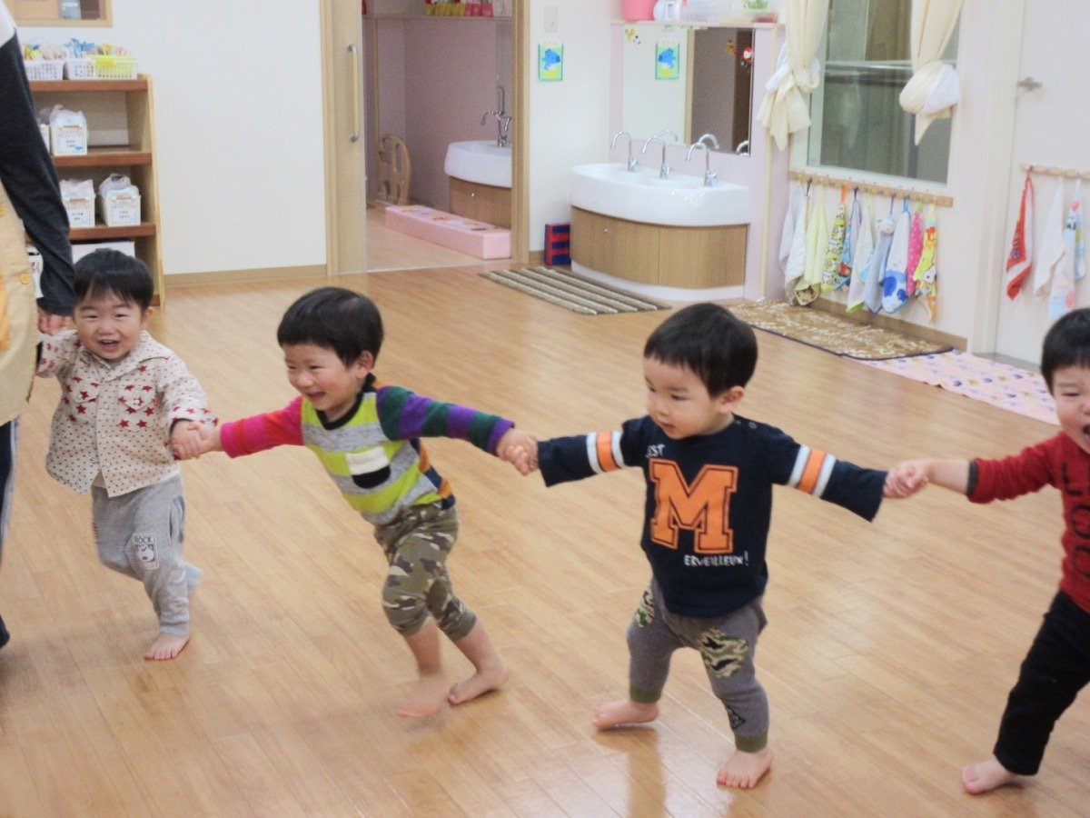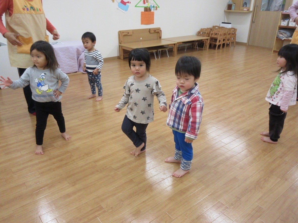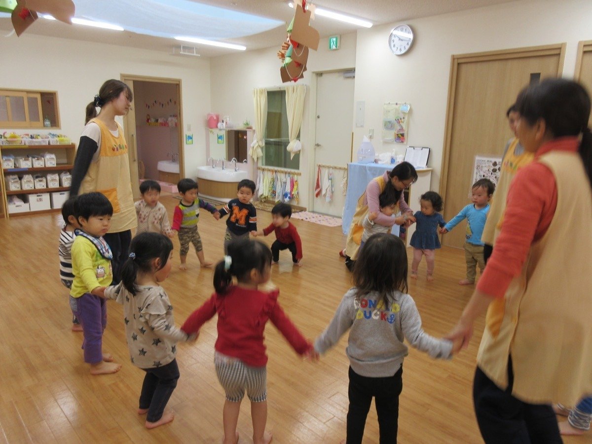 手をつないで輪になったり、ジャンプしたり…と、いろいろな動きを楽しみましたよ♪