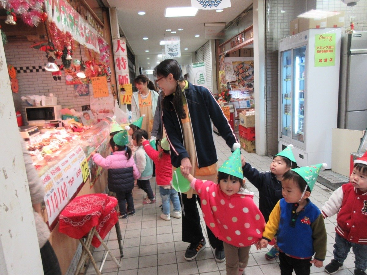お散歩コースのアミング潮江の商店街もクリスマスムード満載で、と~ってもにぎやか♡