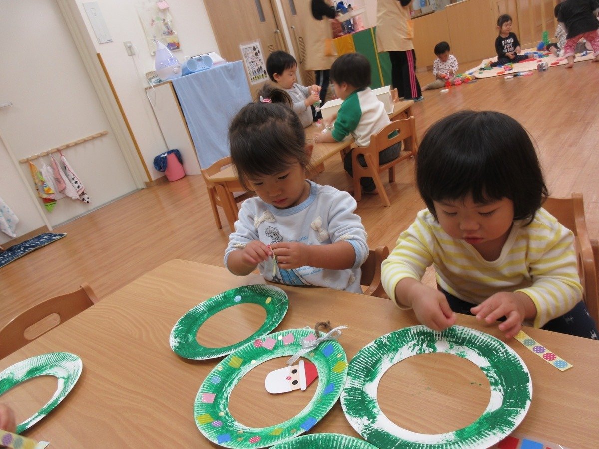 お部屋も、クリスマス帽子に、トナカイカバン、リースも作ってクリスマスが待ちどおしい~☆