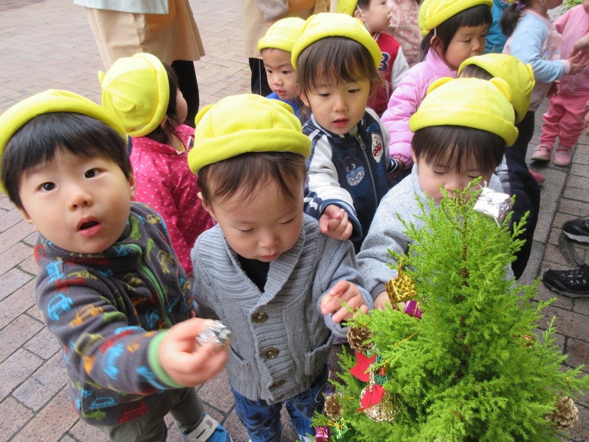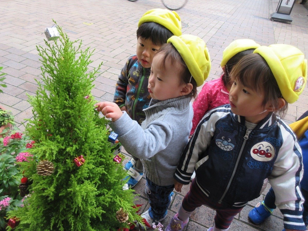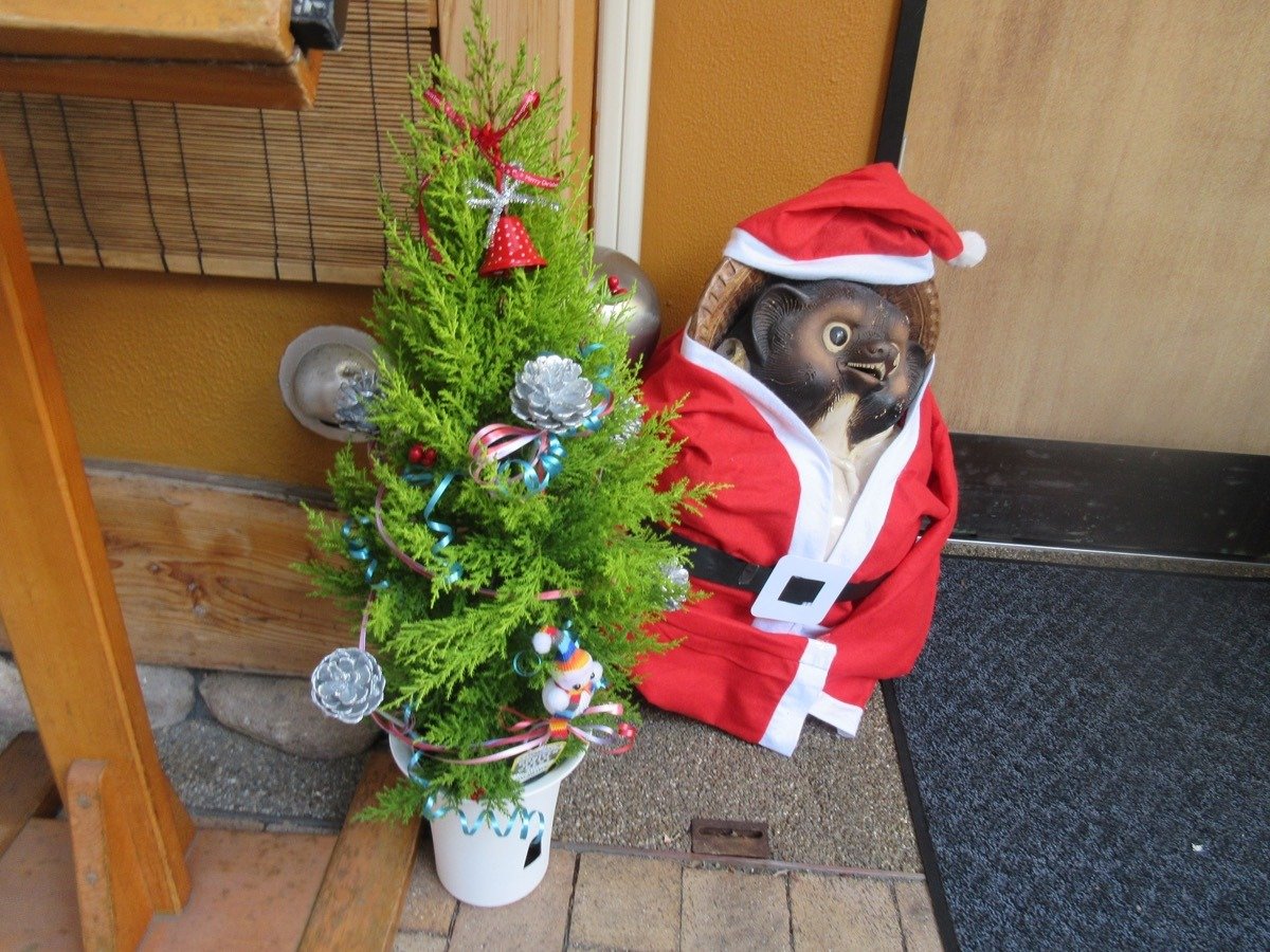 クリスマスツリーの飾りつけをさせて頂いたり、可愛いたぬきさんが、サンタクロースに変身していたり、