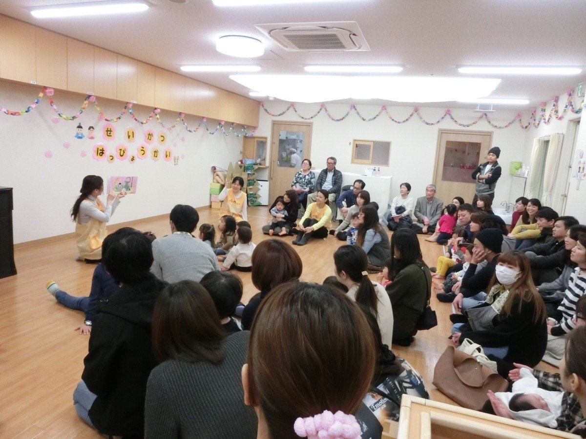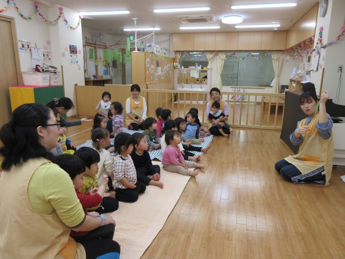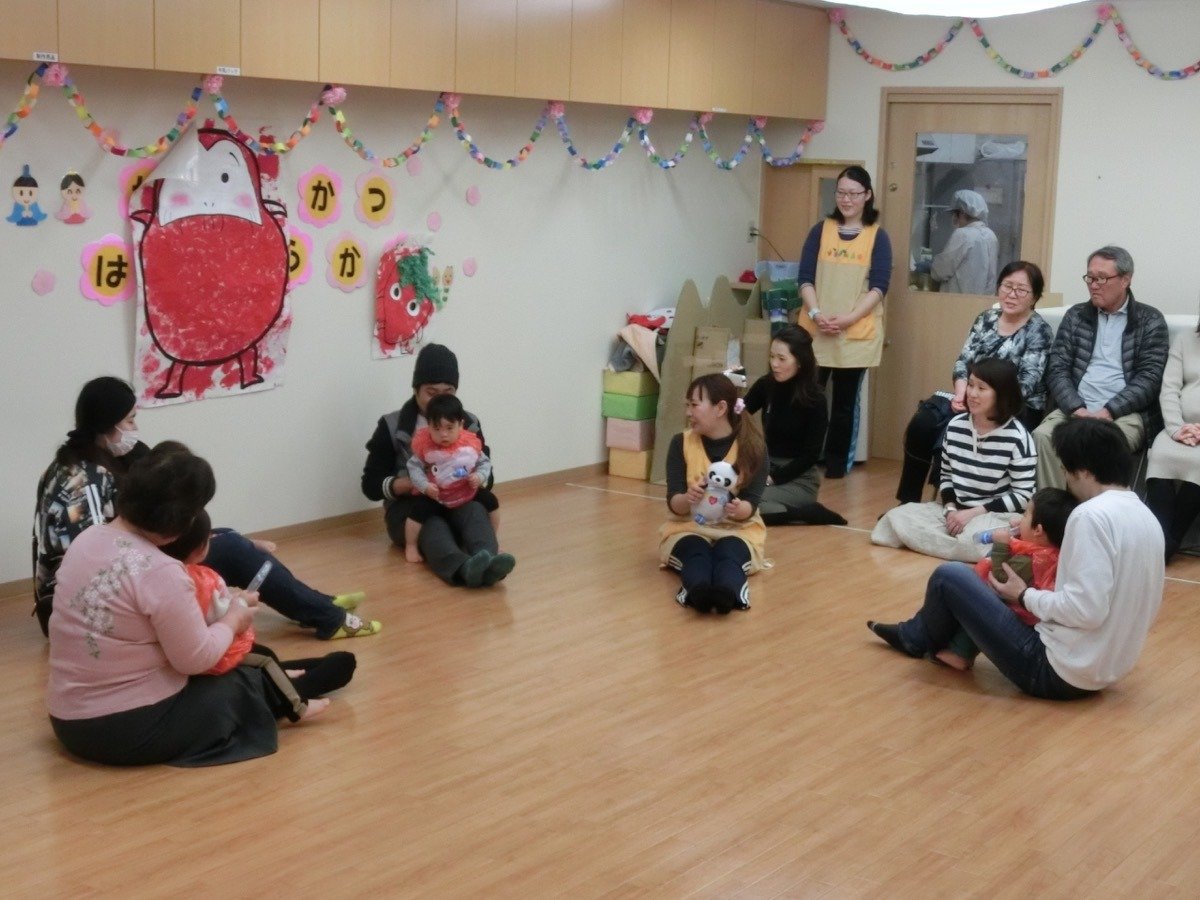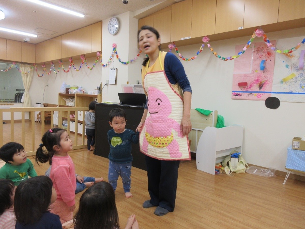 ママやパパと一緒に絵本を見て、お歌を歌ったり、リズムをしましたよ。