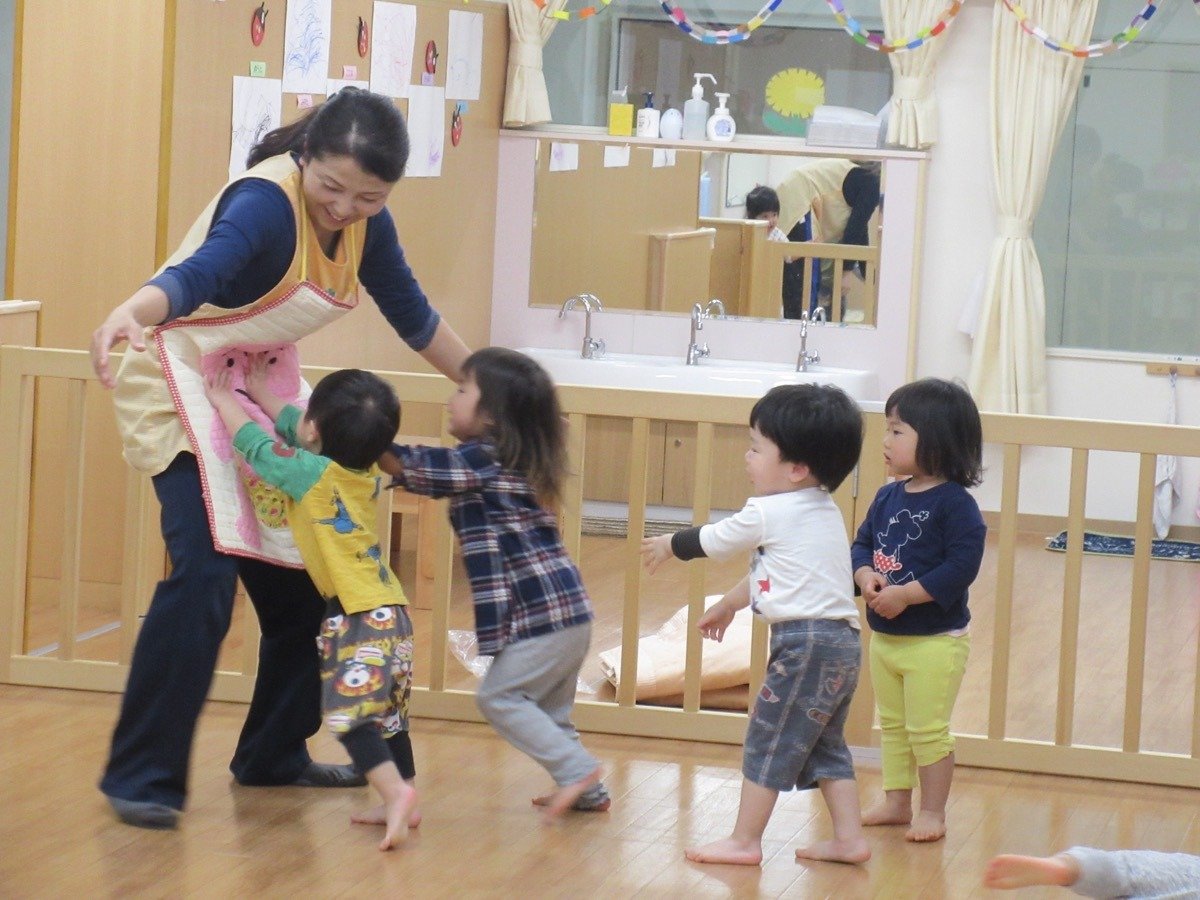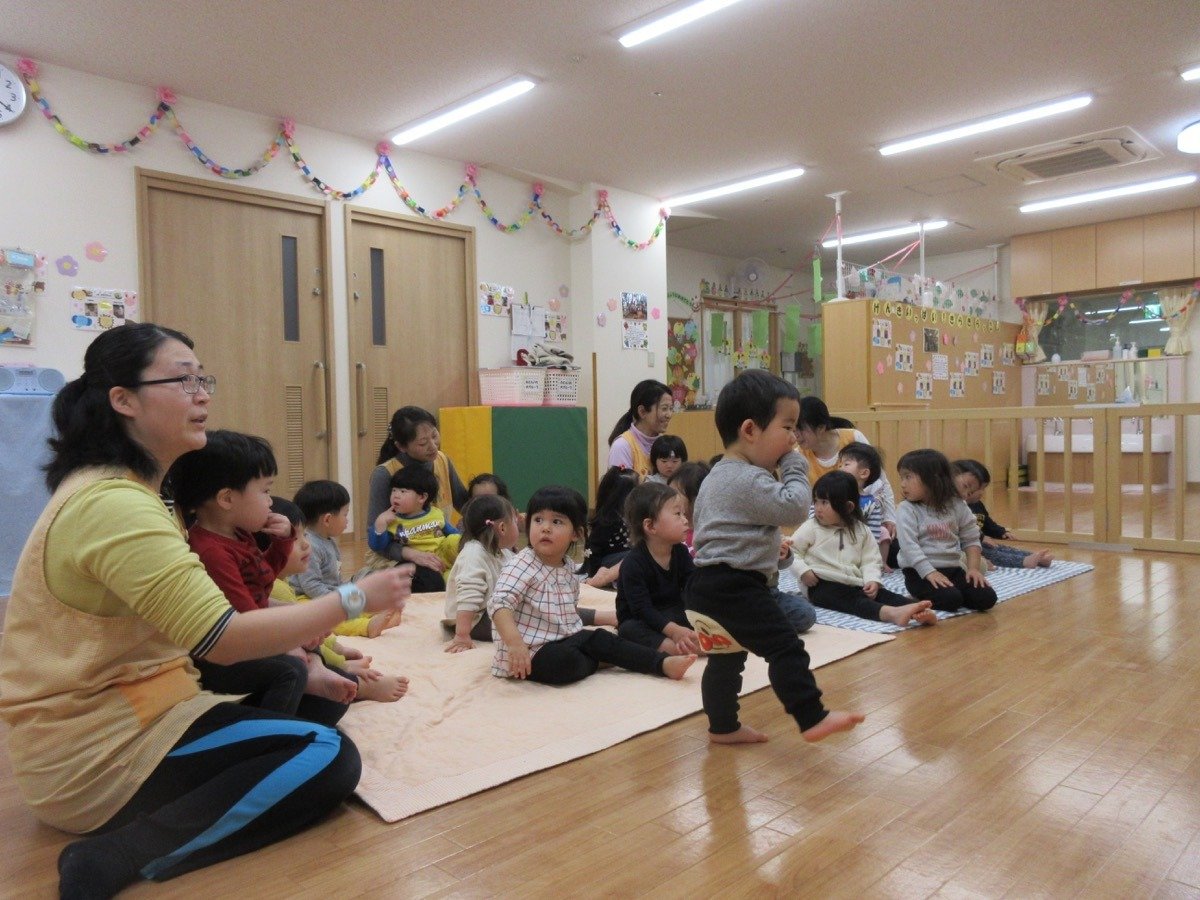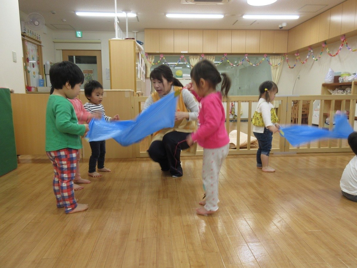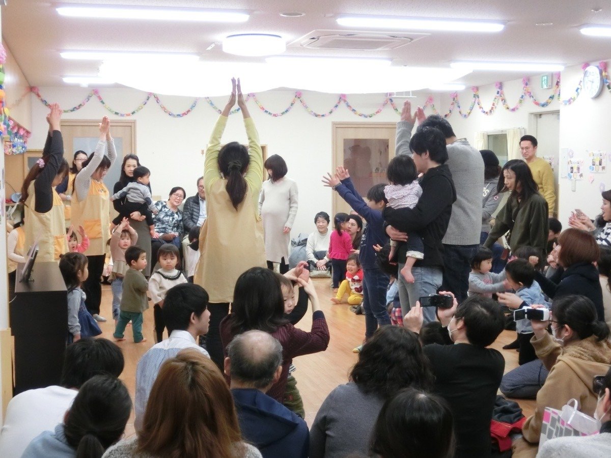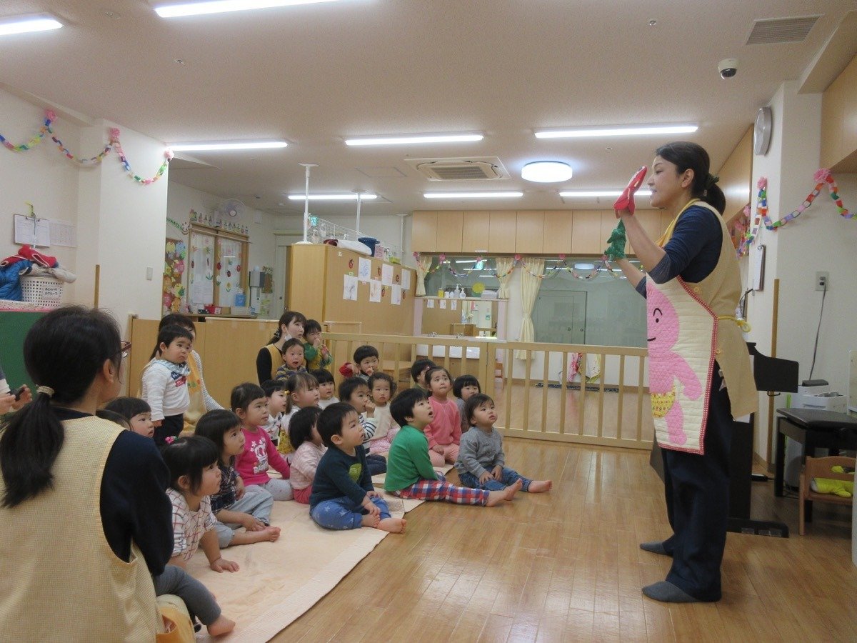 ママやパパと一緒に絵本を見て、お歌を歌ったり、リズムをしましたよ。