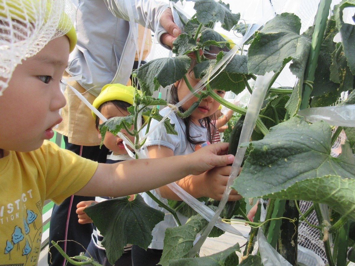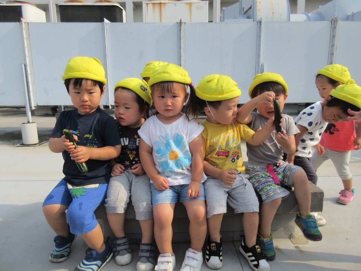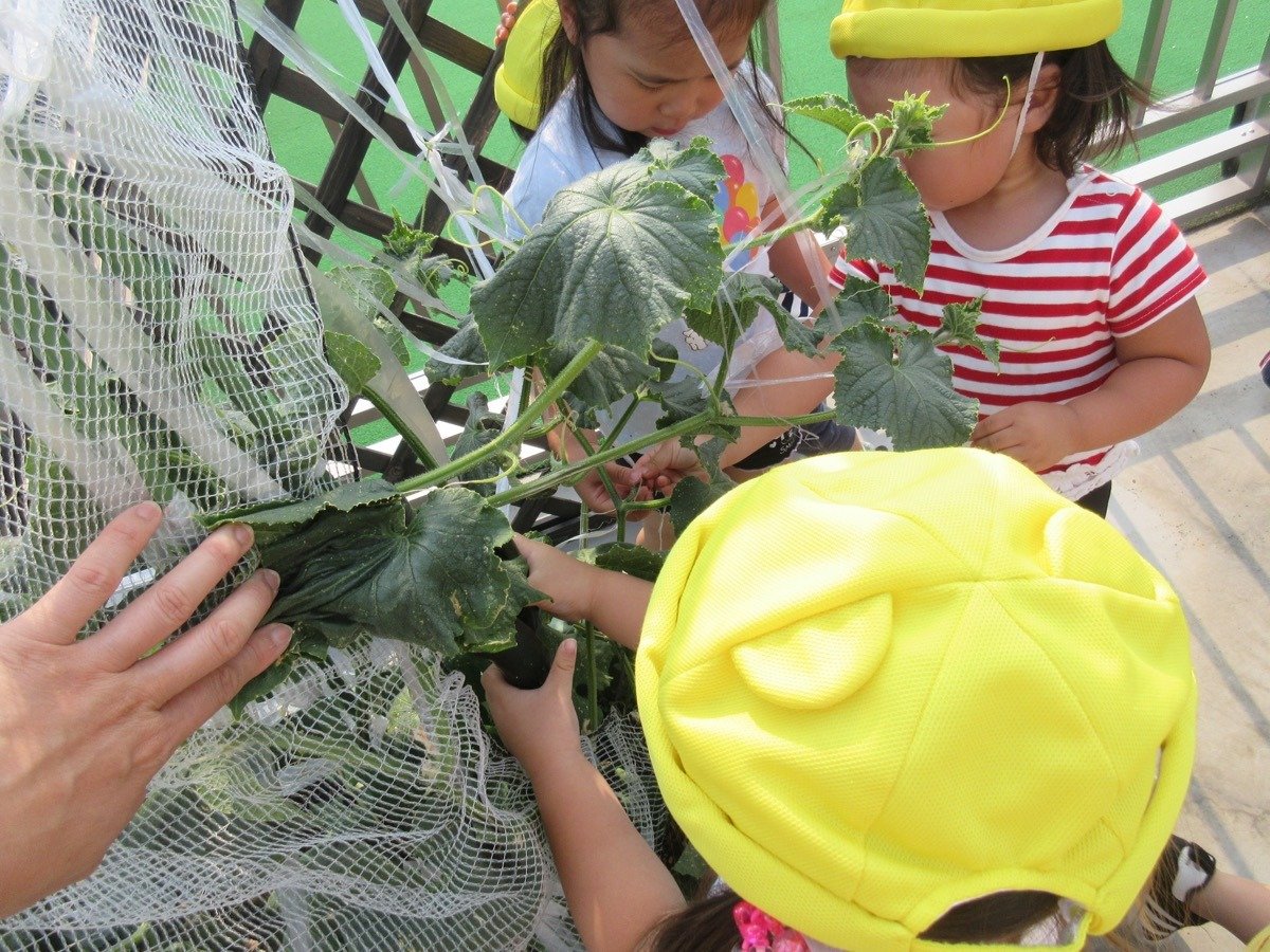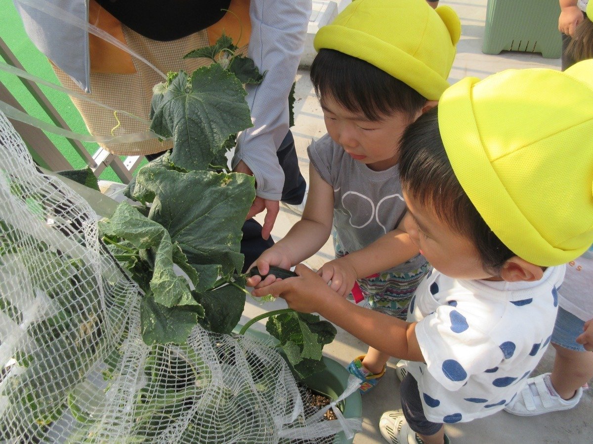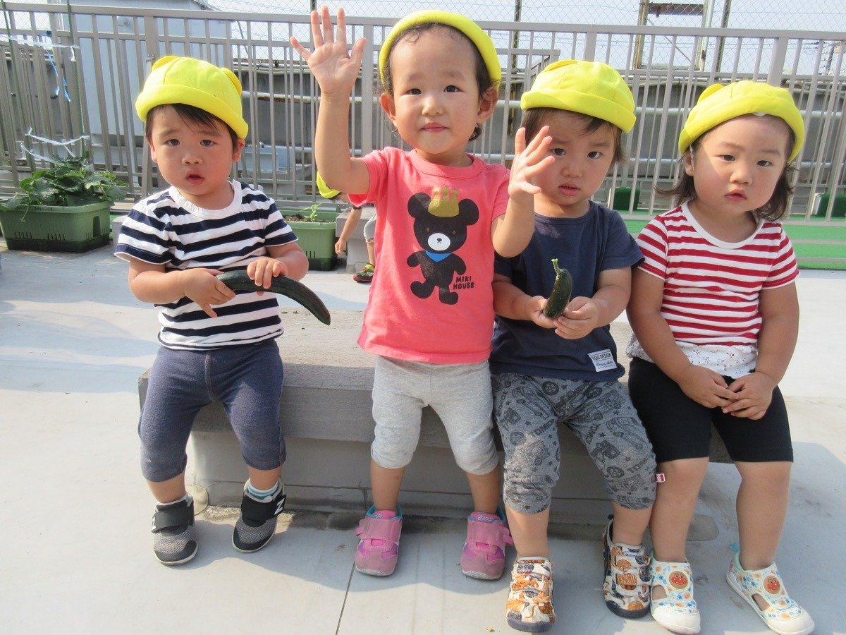 「すっご!!」、「大っき!」、「うわー!キュウリだ!」と、大喜びの子どもたち♪