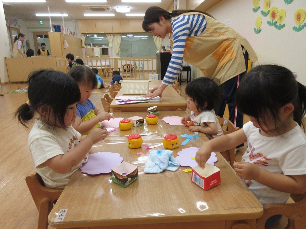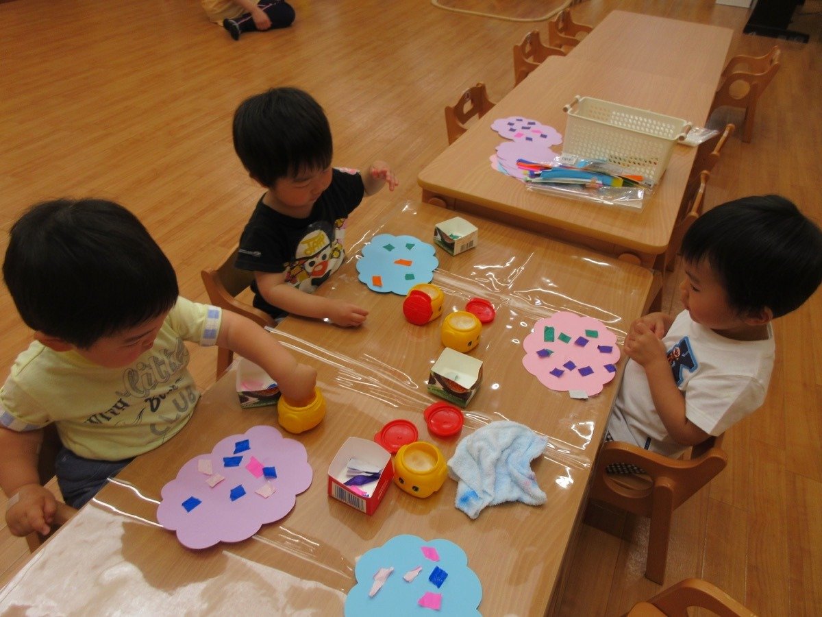 「○○はピンク!」「○○は青!」と、やる気満々で好きな色の画用紙を選んでいましたよ(^^♪