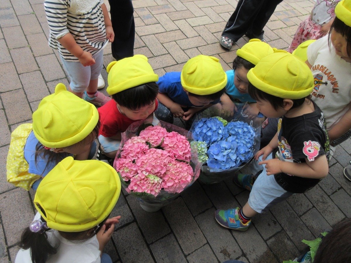 今日は、散歩道でみかける‘紫陽花’を作っていたくま組さん。