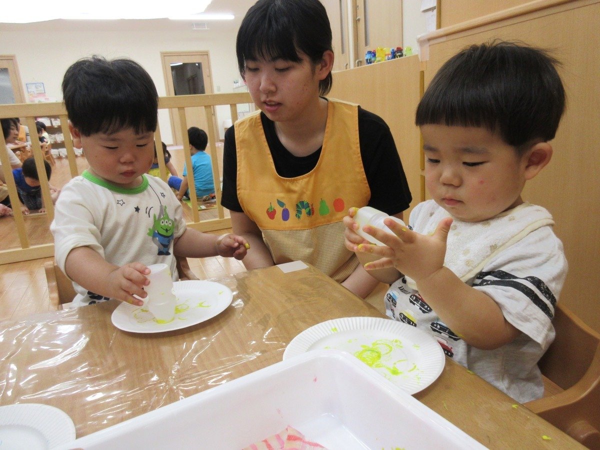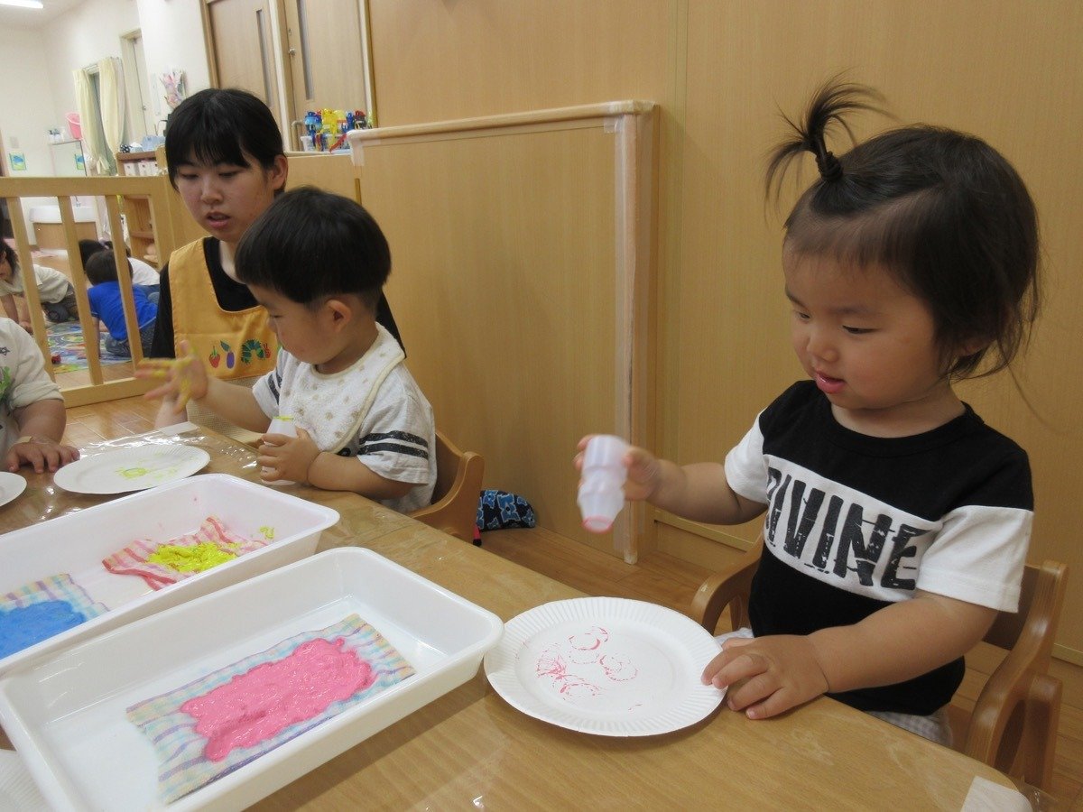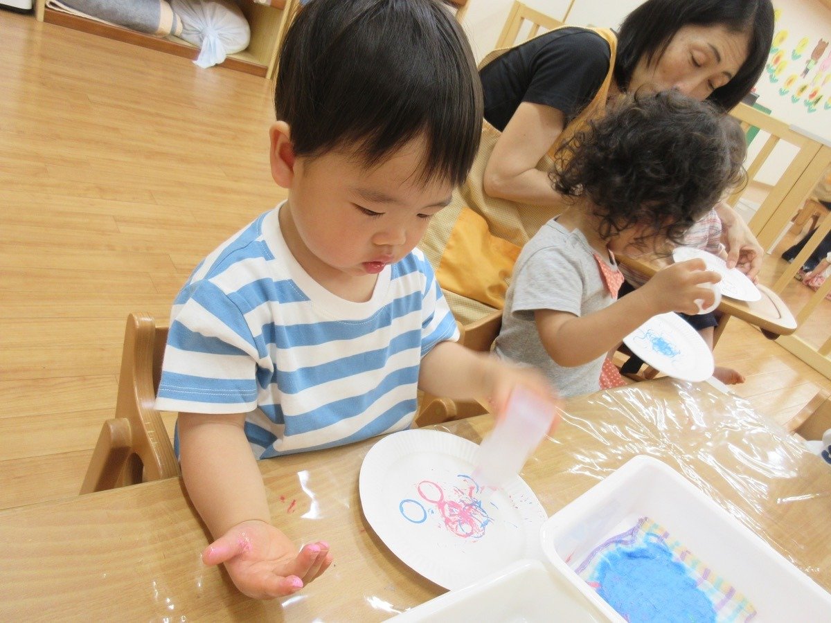 をしていた小さい組さんが画用紙の上だけの色あそびが出来るようになったんです!