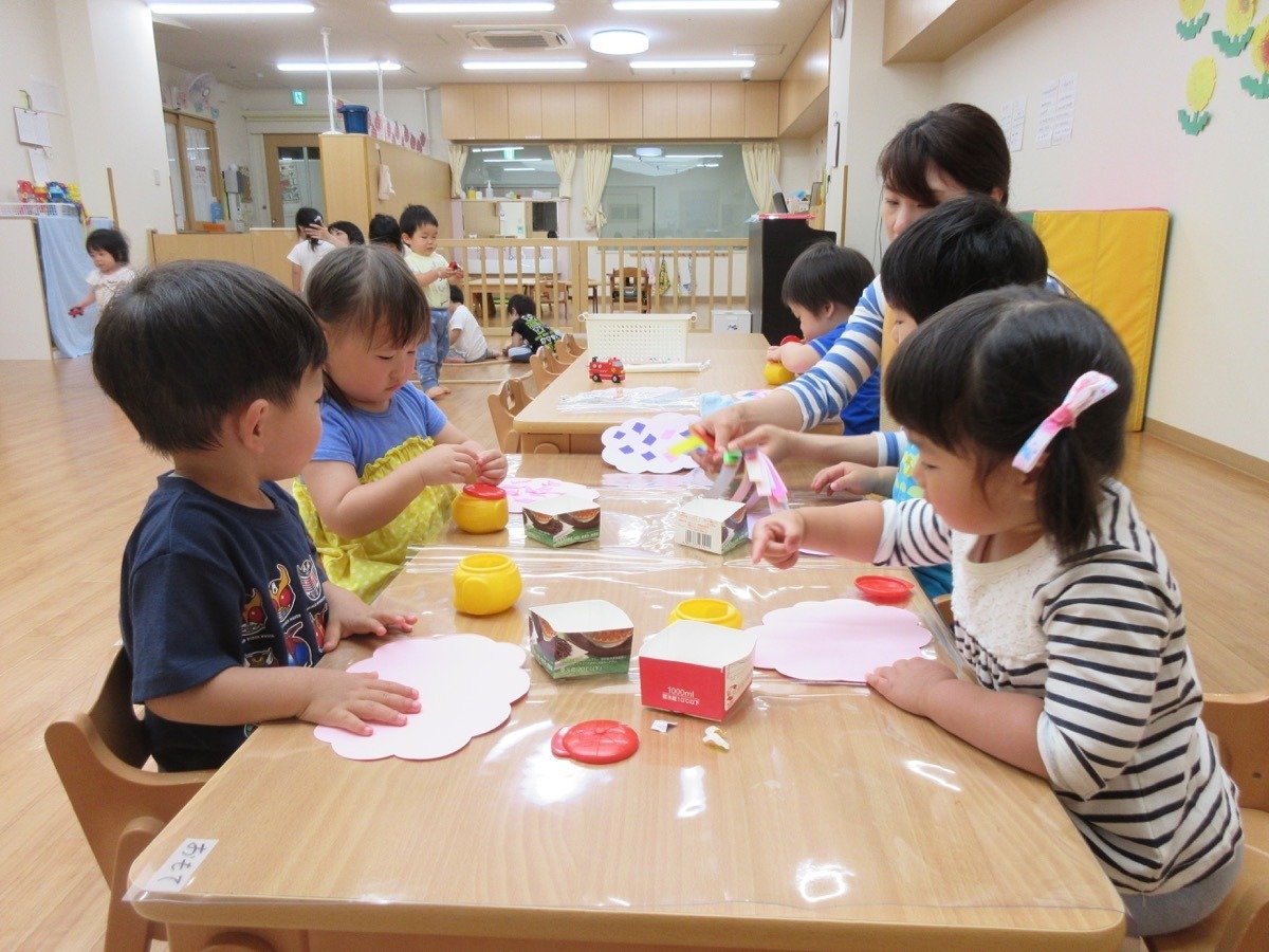 お友だちと交換っこしながら楽しくペタン、ペタン(^^♪