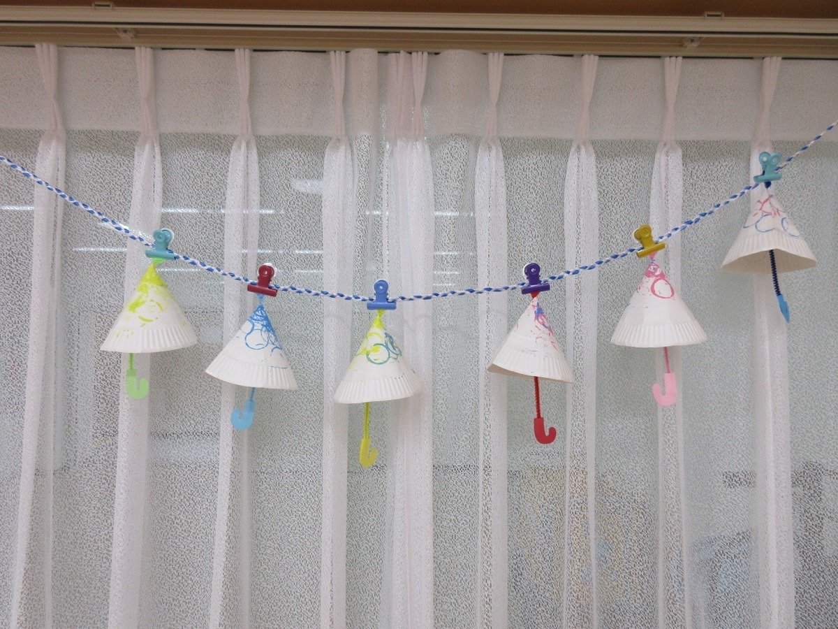 小さい組さんの窓に可愛い傘が咲いてますよ☔