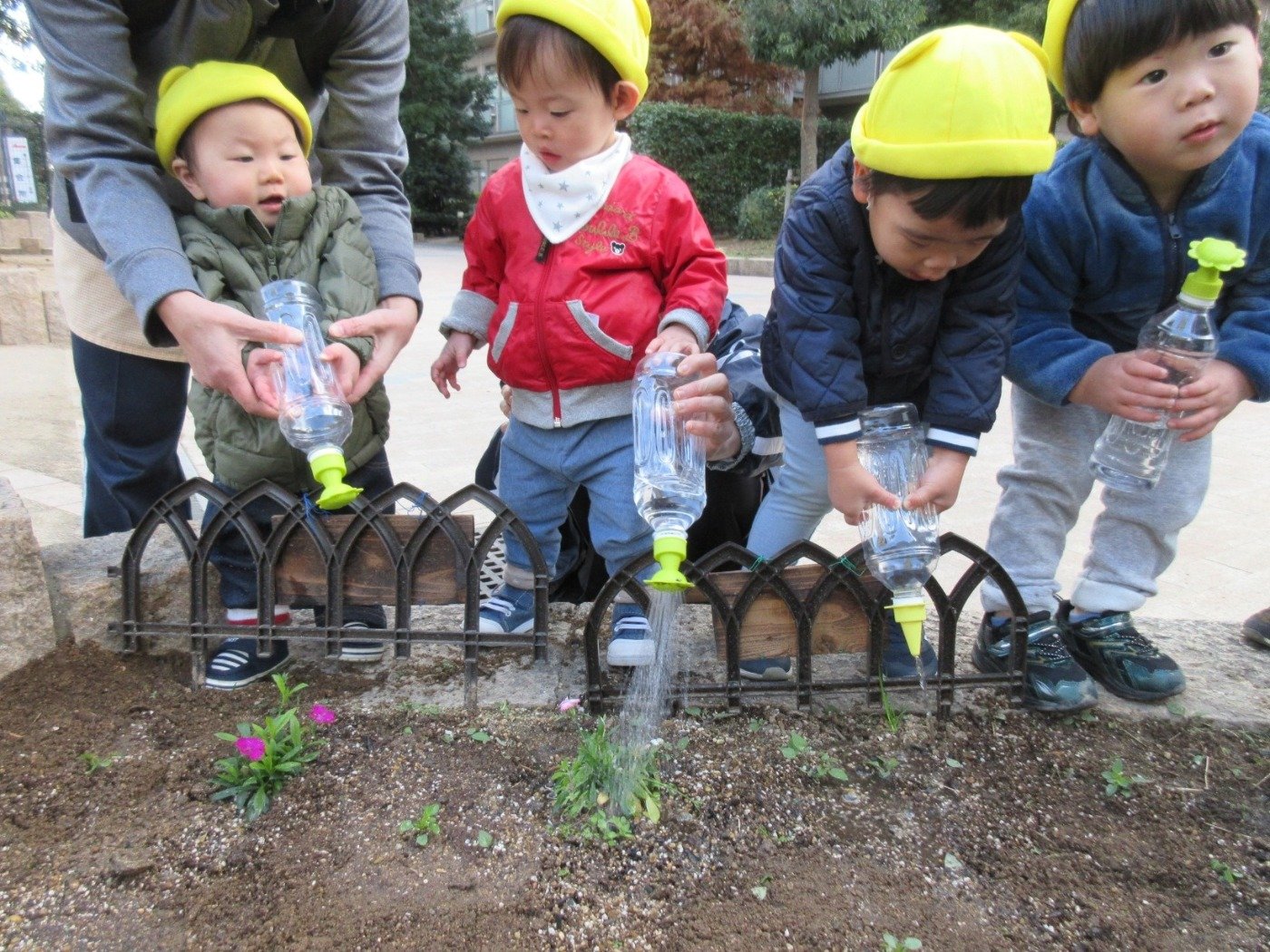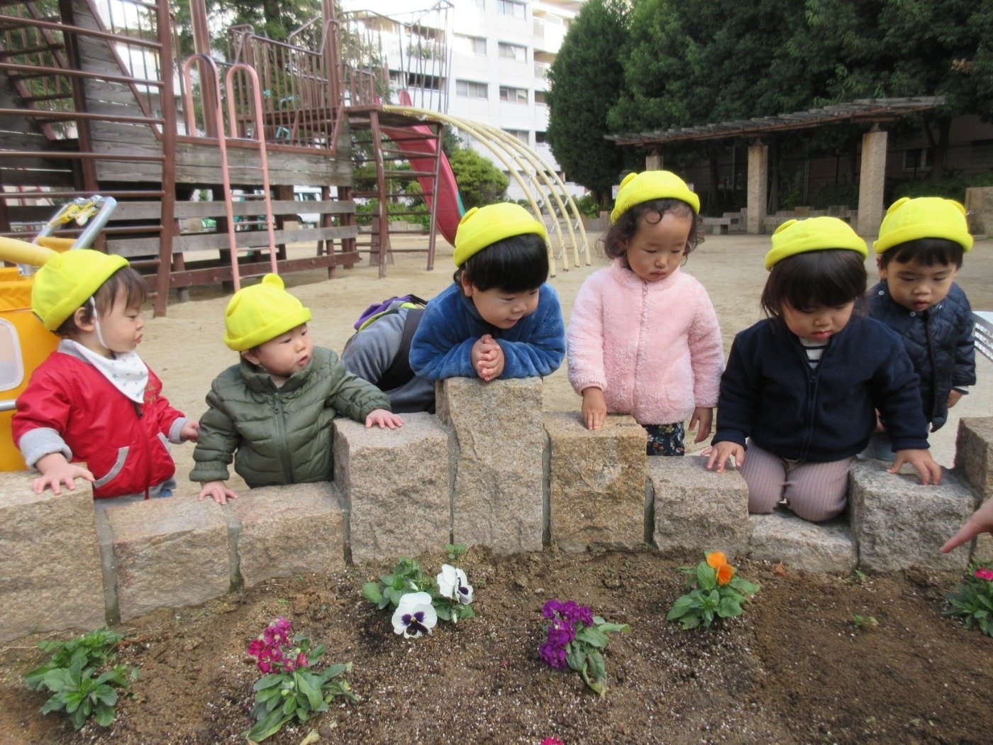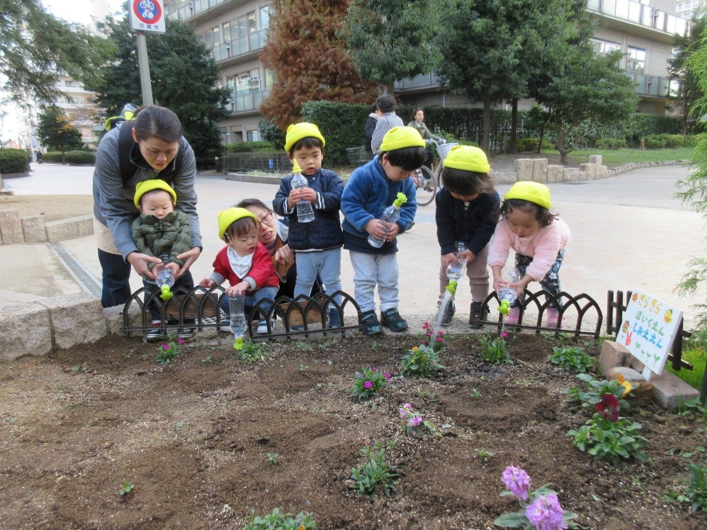 船公園の ‘きらきら花壇’ 。くま組さんに続き、今月はうさぎ組さんとひよこ組さんが挑戦したよ♪