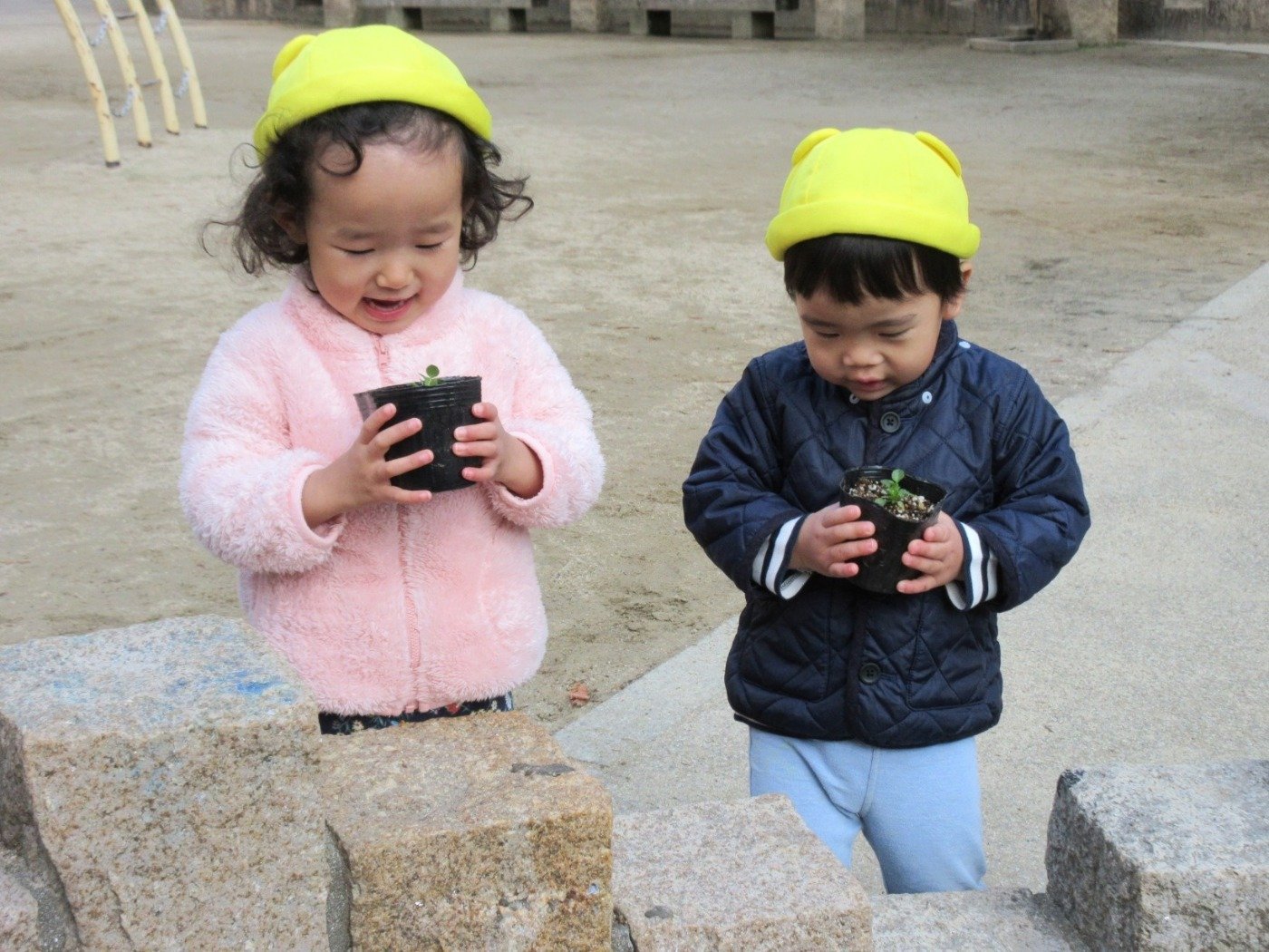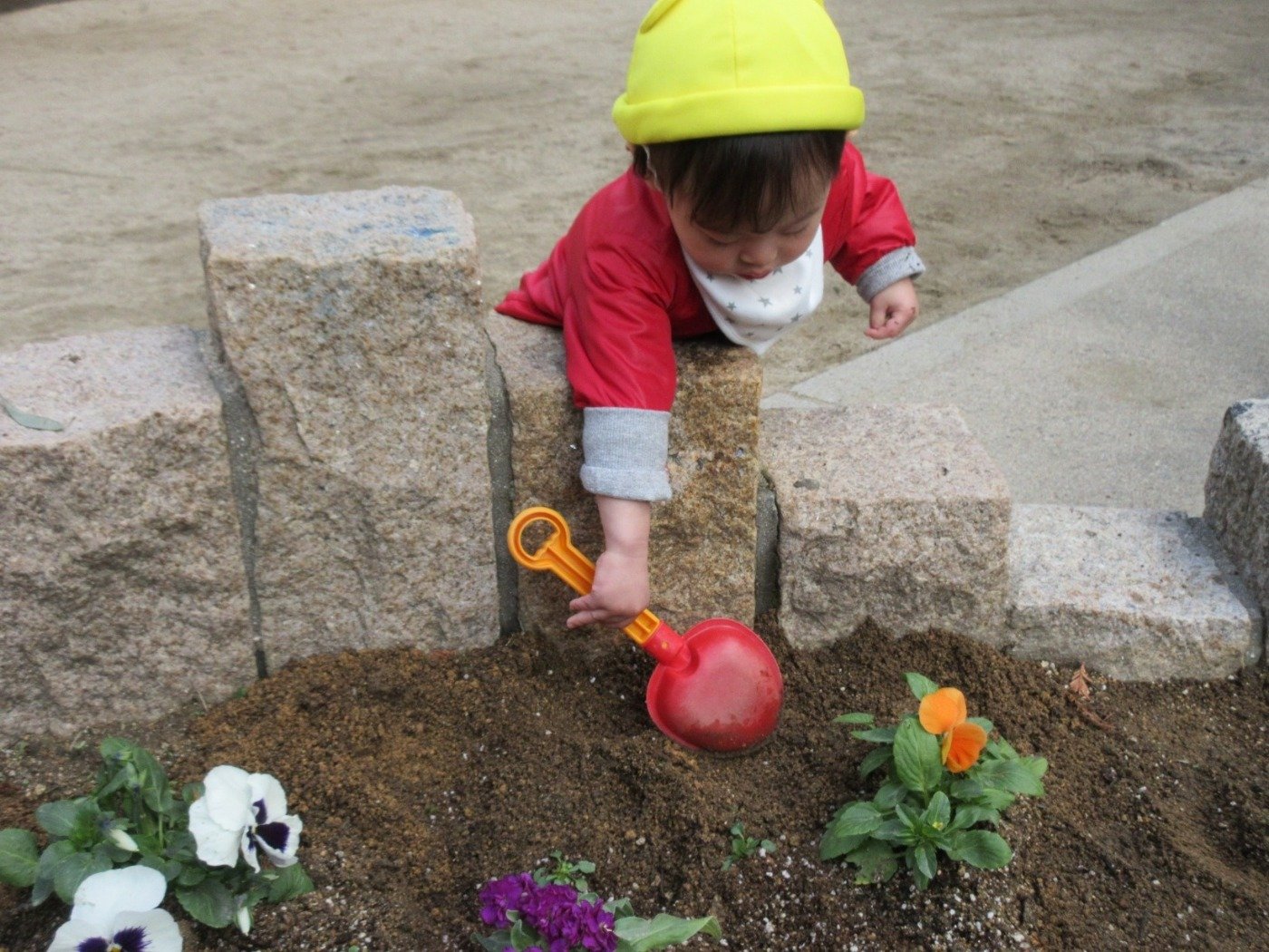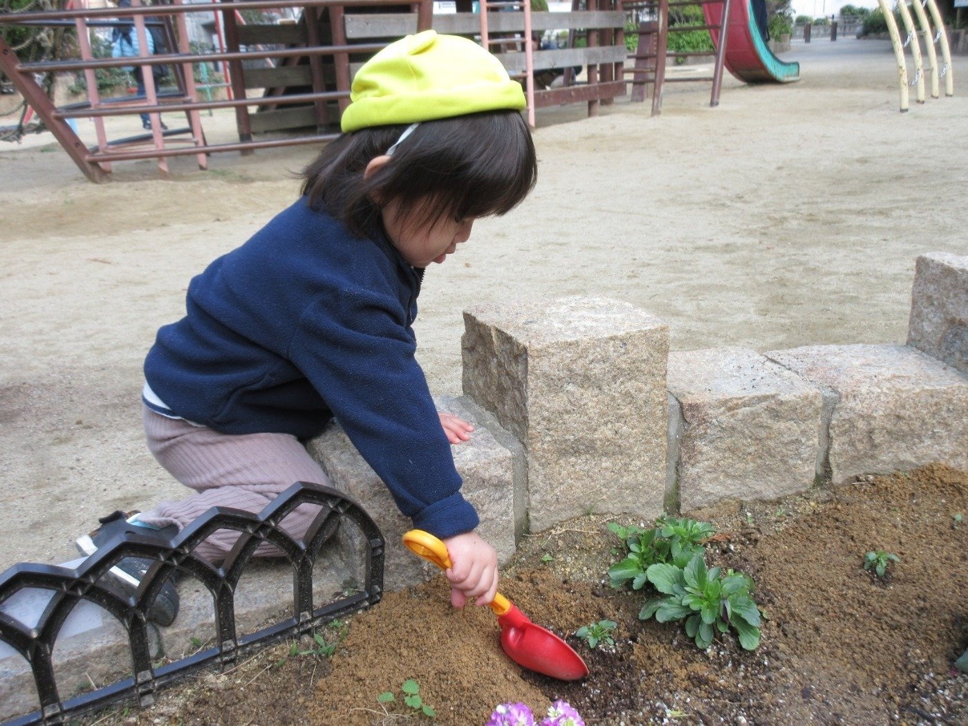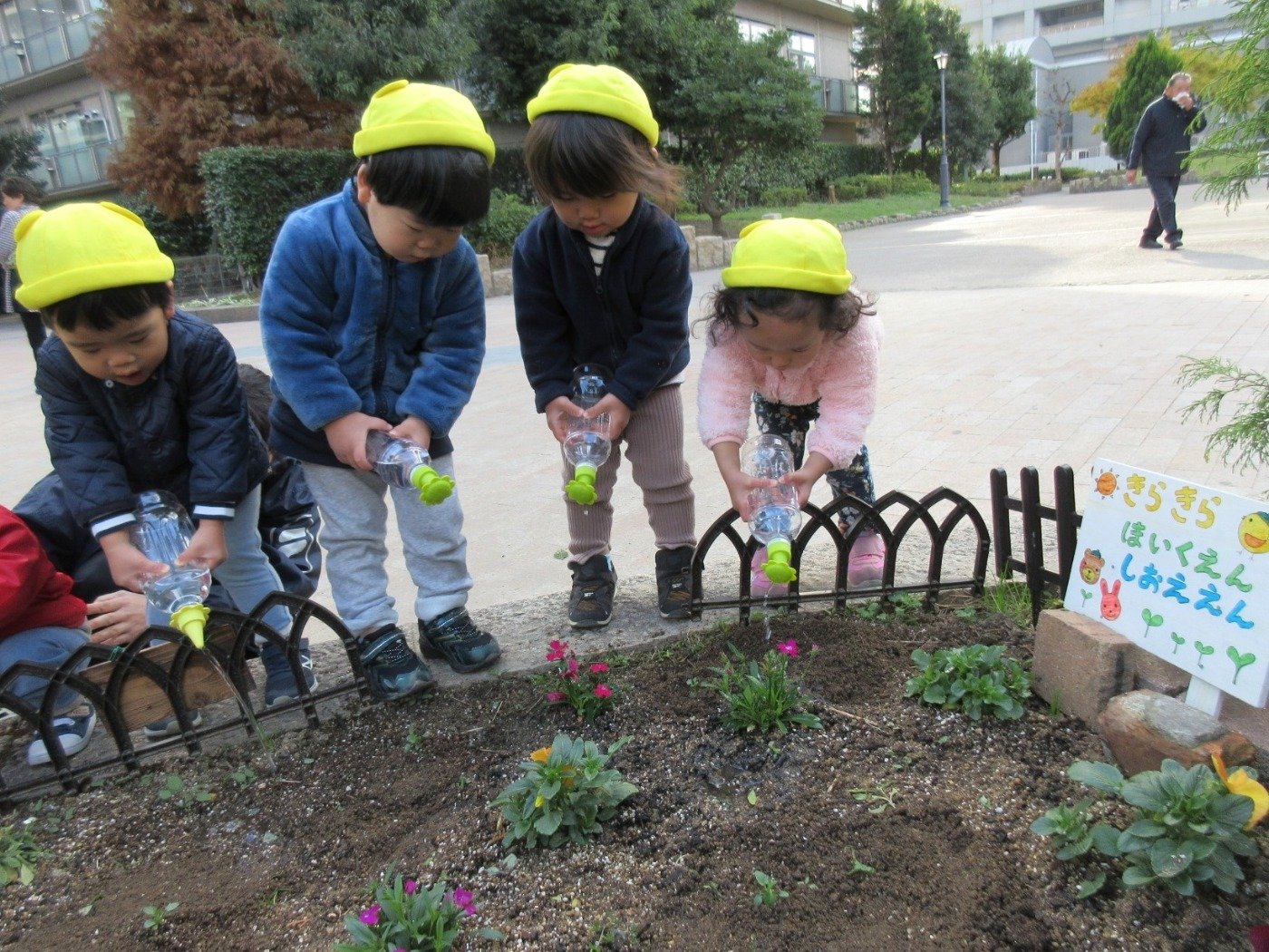 船公園の ‘きらきら花壇’ 。くま組さんに続き、今月はうさぎ組さんとひよこ組さんが挑戦したよ♪