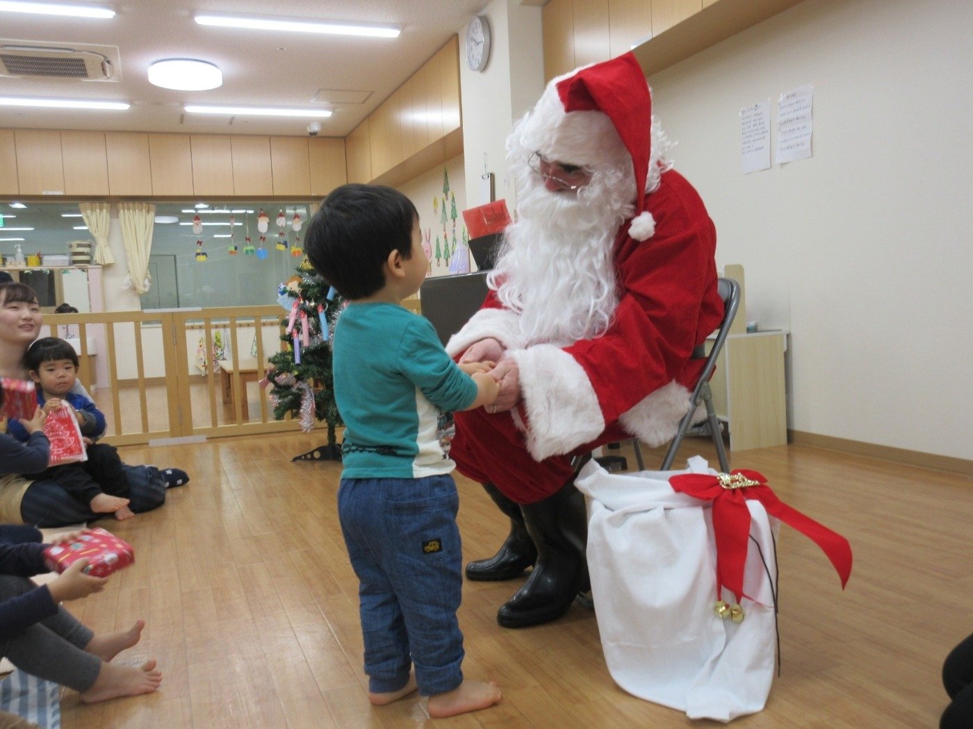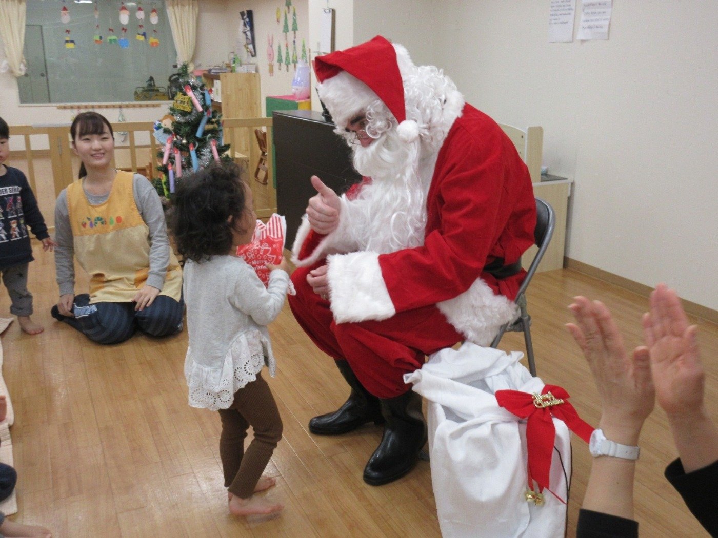 入り口から、白い大~きな袋を持って「メリークリスマス!」大きな、大~きな🎅の姿が見えた瞬間「きゃ~♡」