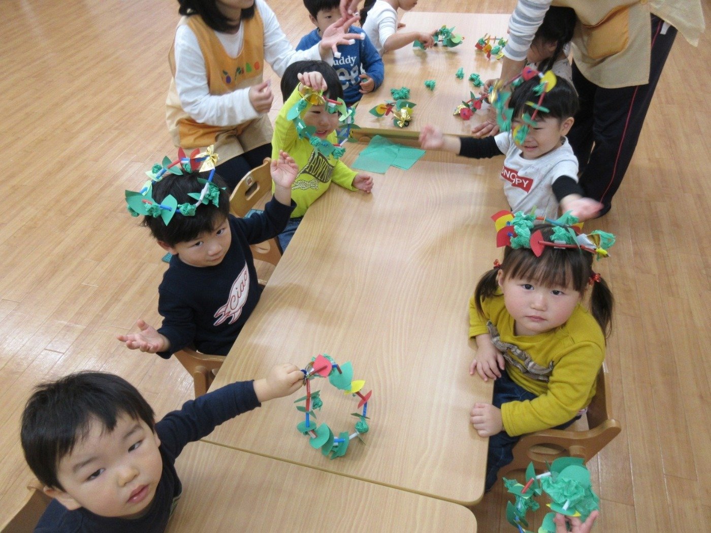 「できた!」「みて(^^)~」とっても素敵なリースの完成です♪