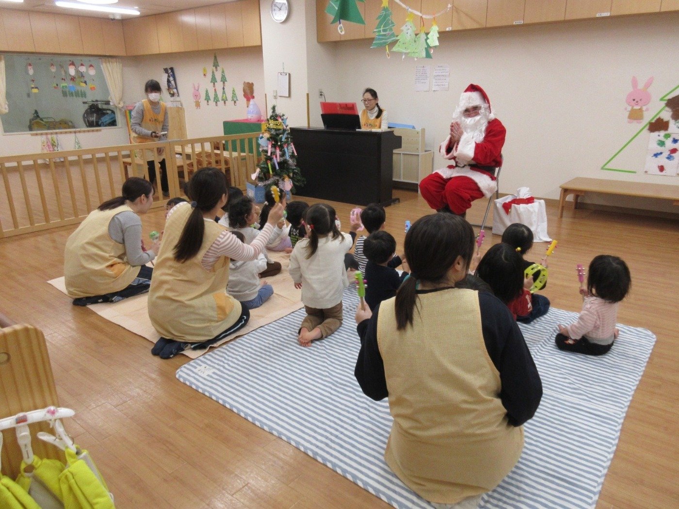 ‘ジングルベル♪’ と ‘あわてんぼうのサンタクロース♪’ を子どもたちと一緒に大合唱♬