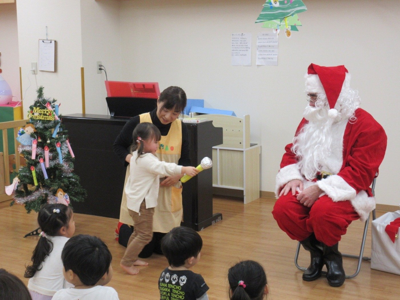 「あれは何だ!!」初めて見るサンタさんにビックリして大泣きの’ひよこ組’さん