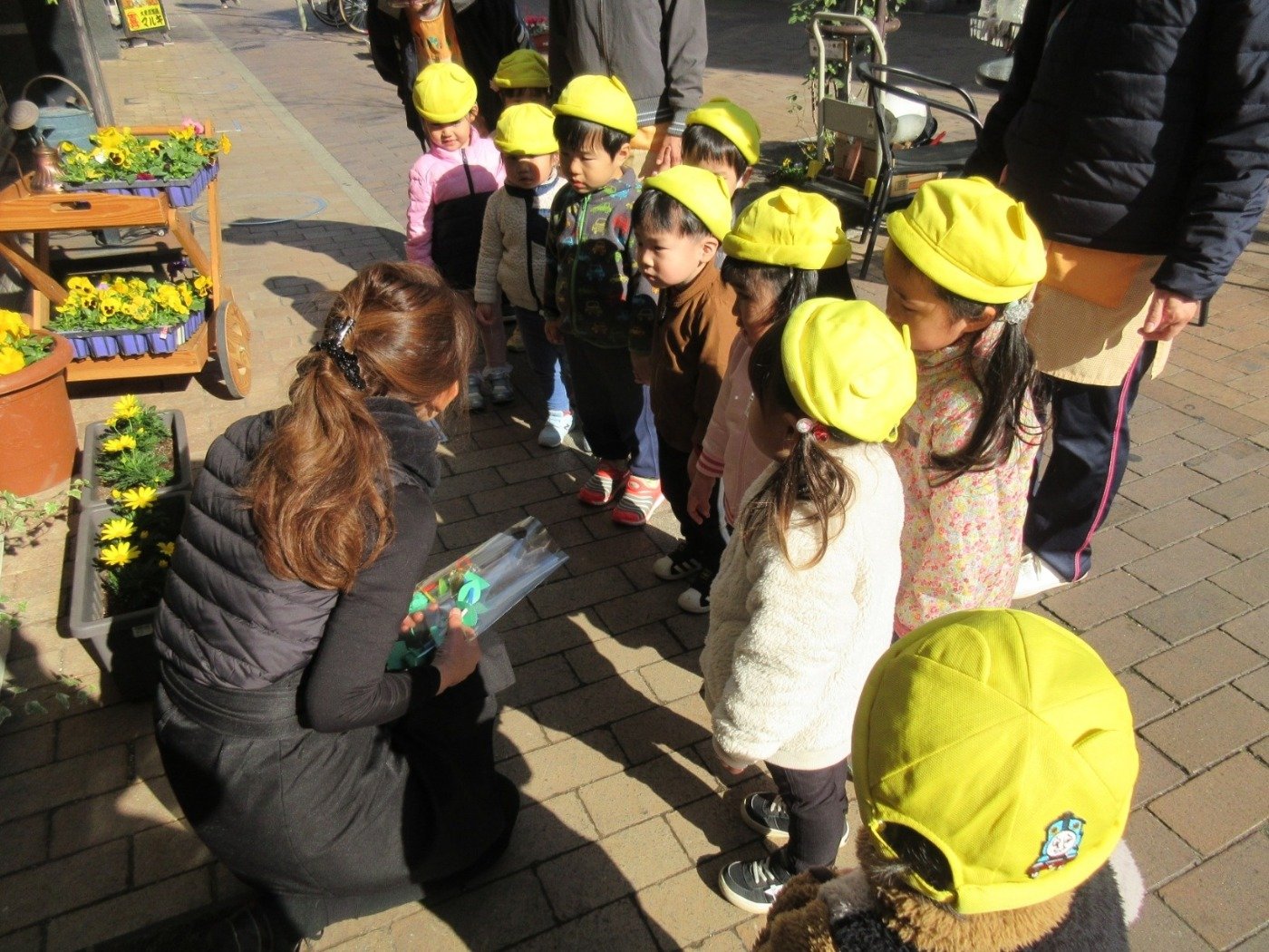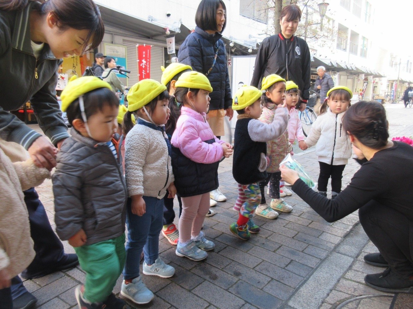 「こんにちは。これどうぞ♡」と、こちらでも元気いっぱいご挨拶(^^♪
