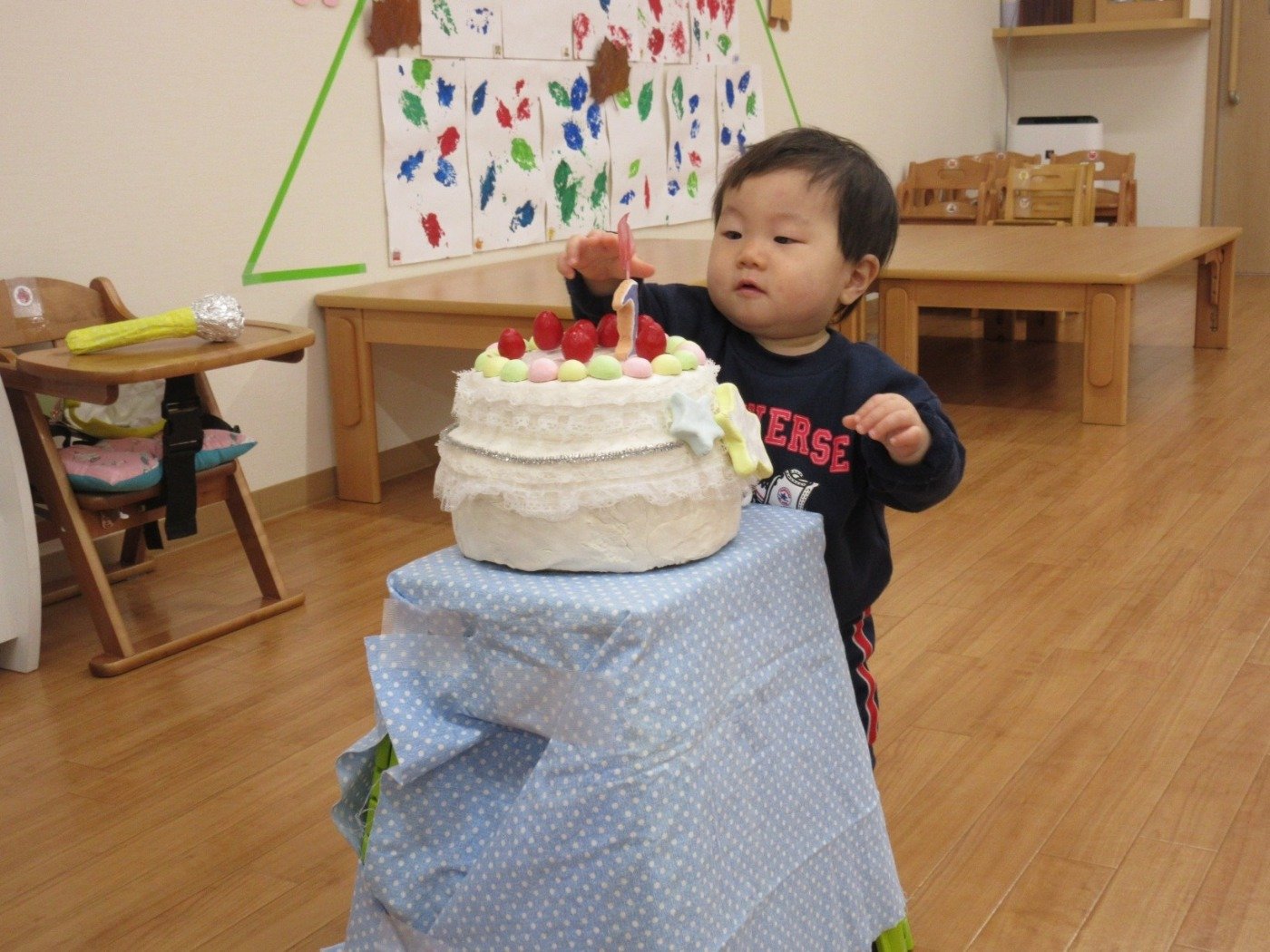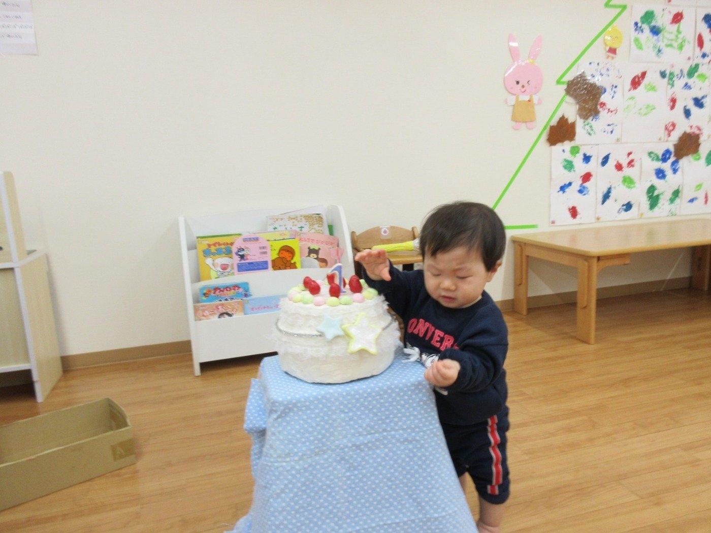 今月は、ひよこ組さんのお友だちが1歳になったお祝いだよ♡