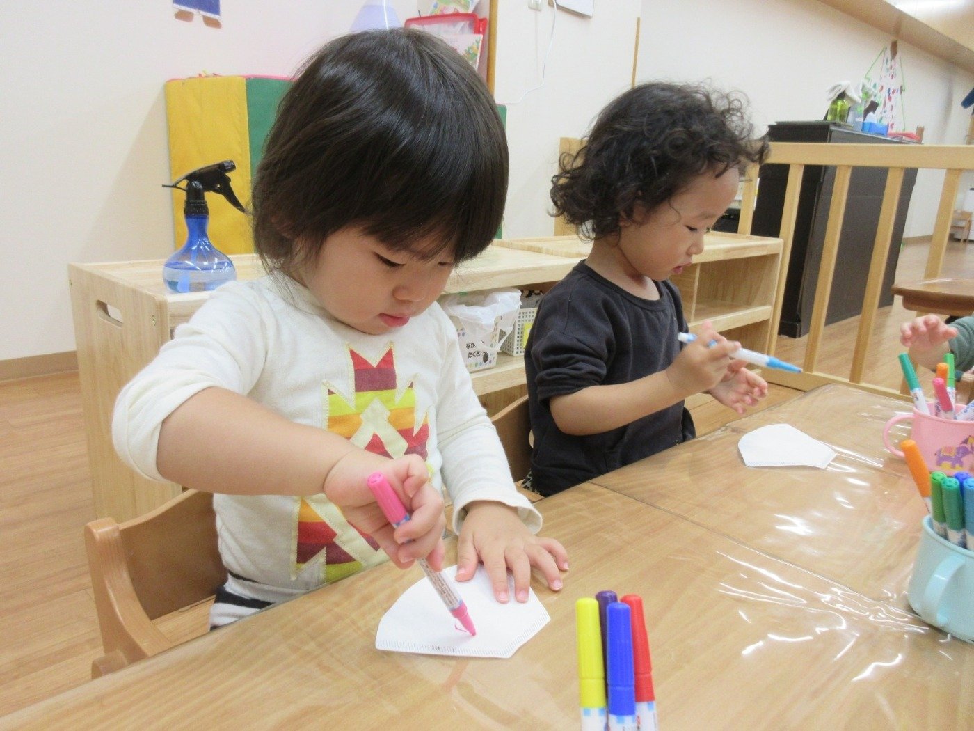ひよこ組さんとうさぎ組さんも ‘にじみ絵’ でかわいい天使をつくったよ