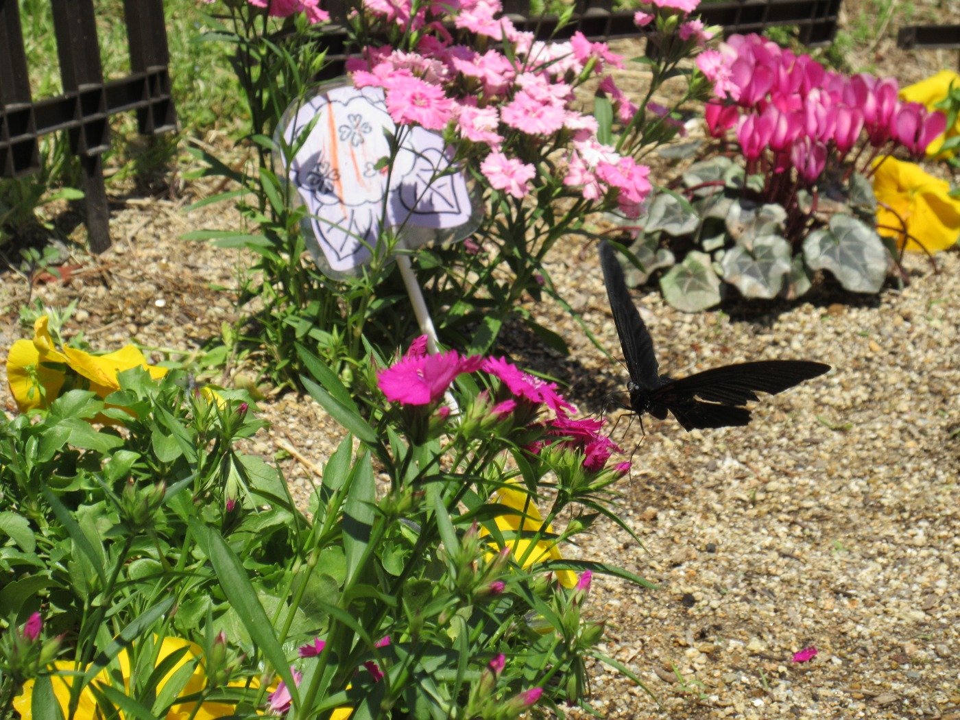 いいなぁ~と、羨ましく思っていると大きな🦋がきらきら花壇にやって来ました。