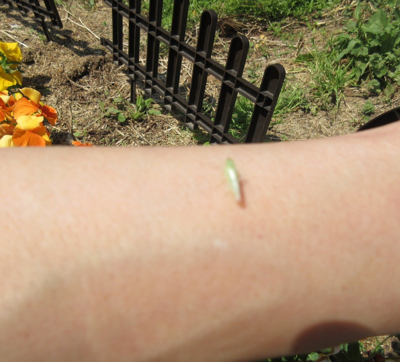 すると! 小さな小さな ‘バッタの赤ちゃん’ が手の上にそっと止まったんです!
