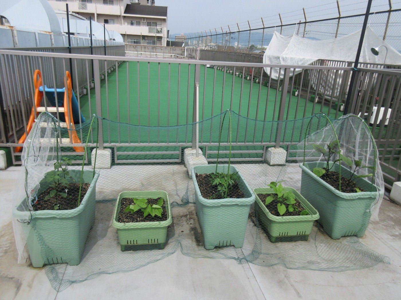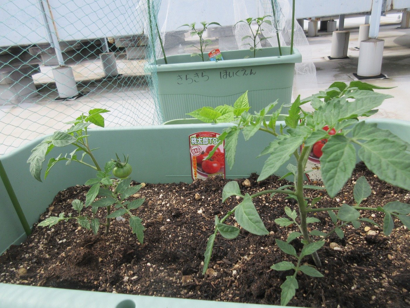 きらきら花壇のお花たちも、屋上の野菜たちも