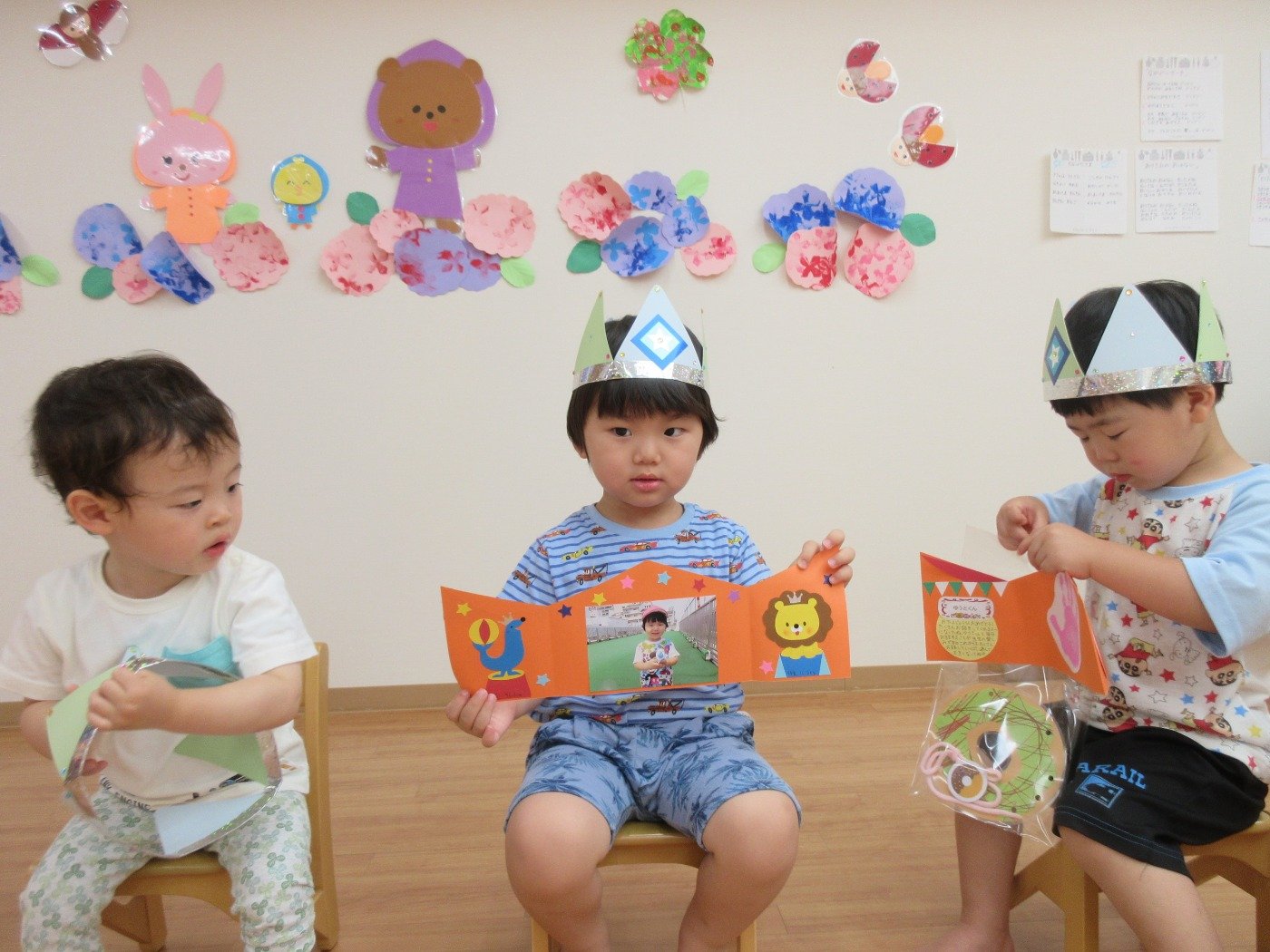 初めての冠が気になってしかたがないひよこ組さんのお友だち。