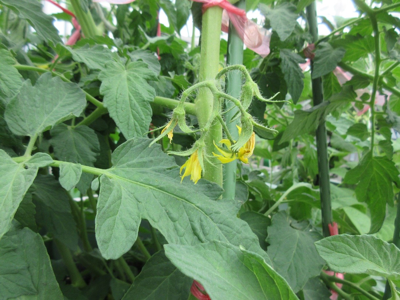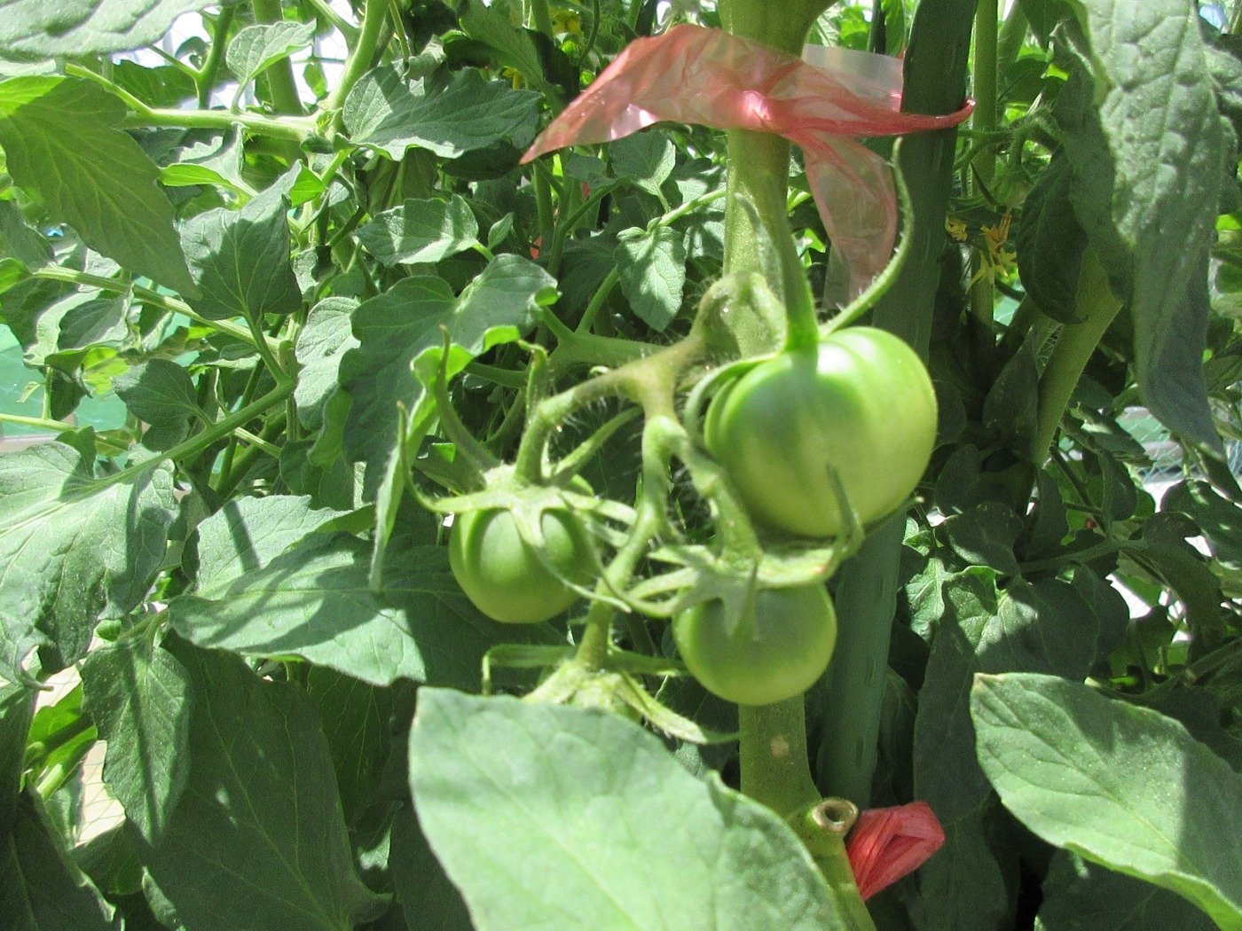 青いトマトと、赤ちゃんピーマンに、「大きくな~れ」って