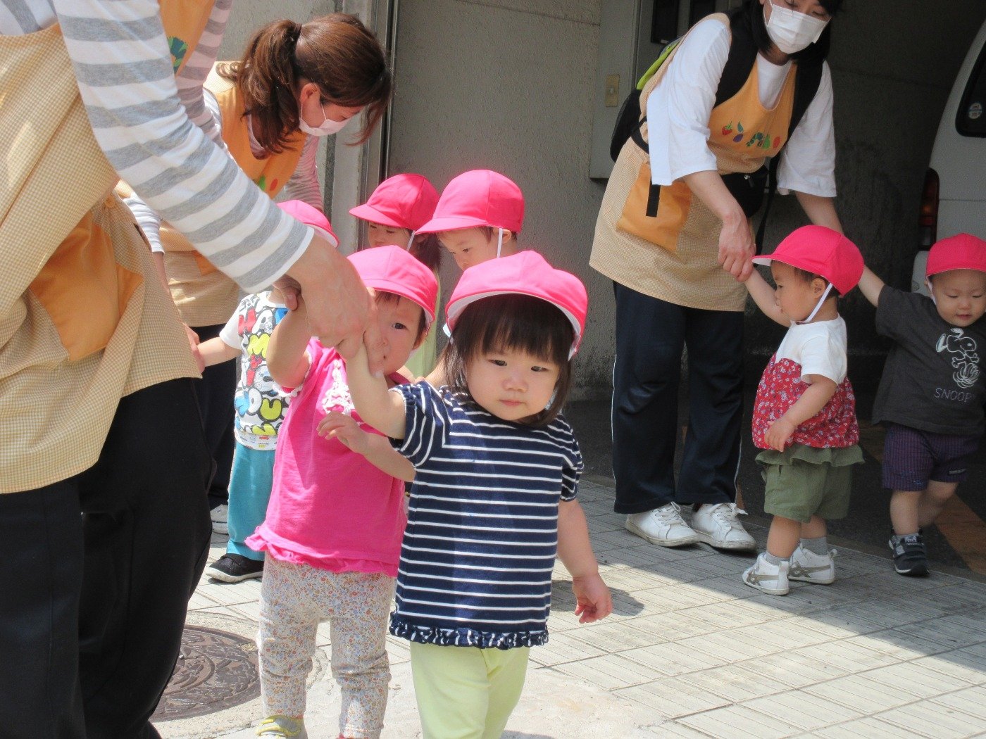 今日はうさぎ組さんが初めてのお散歩に挑戦したよ♪