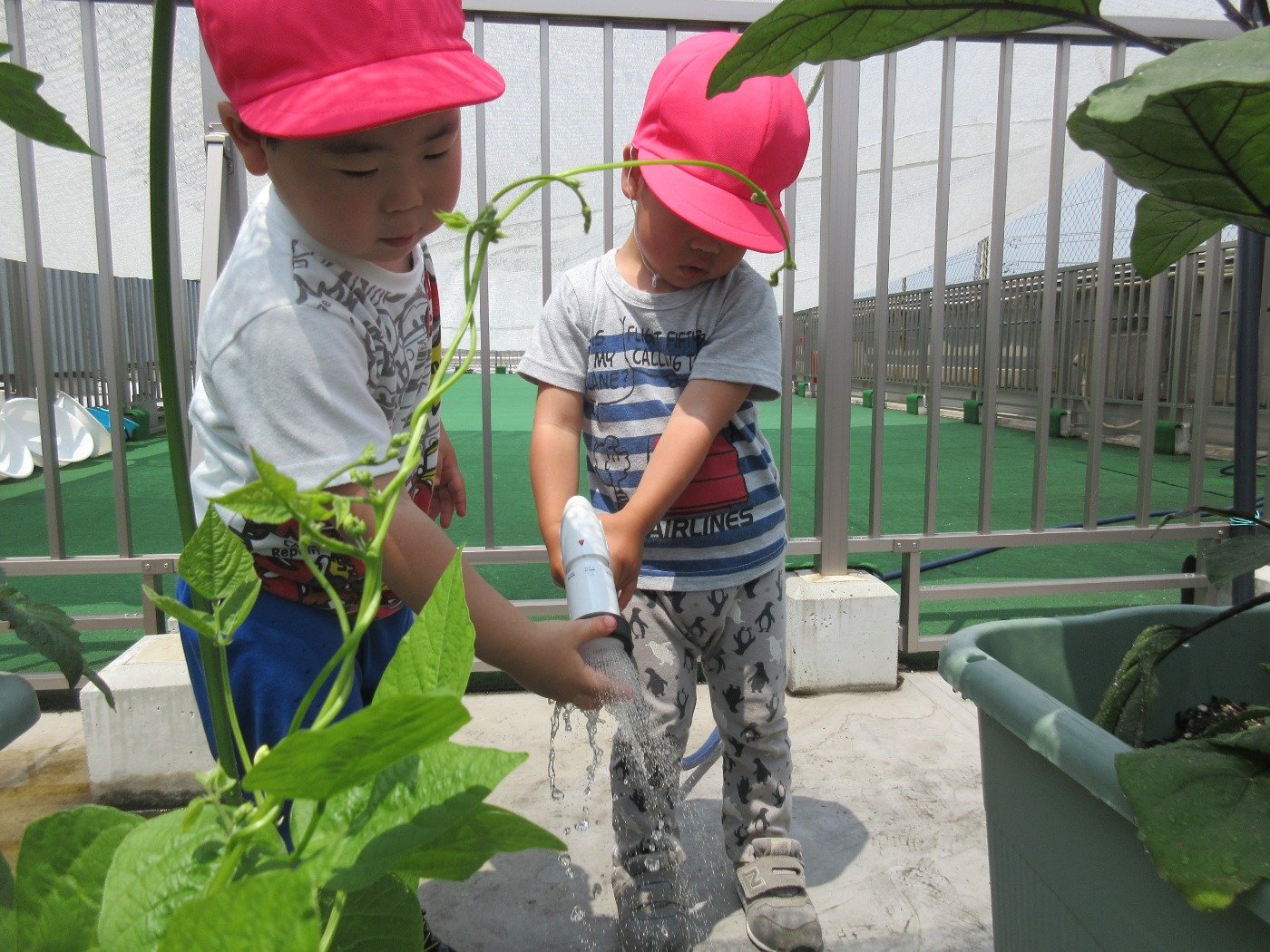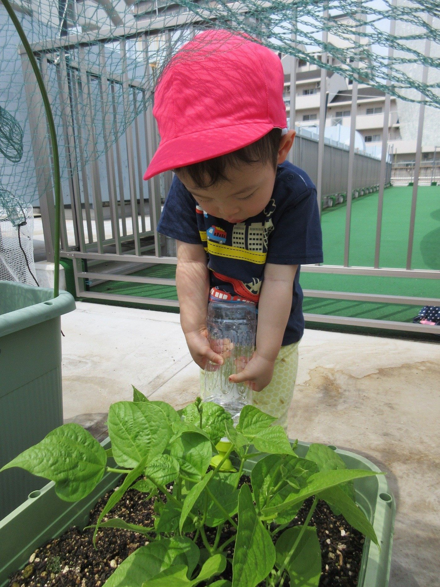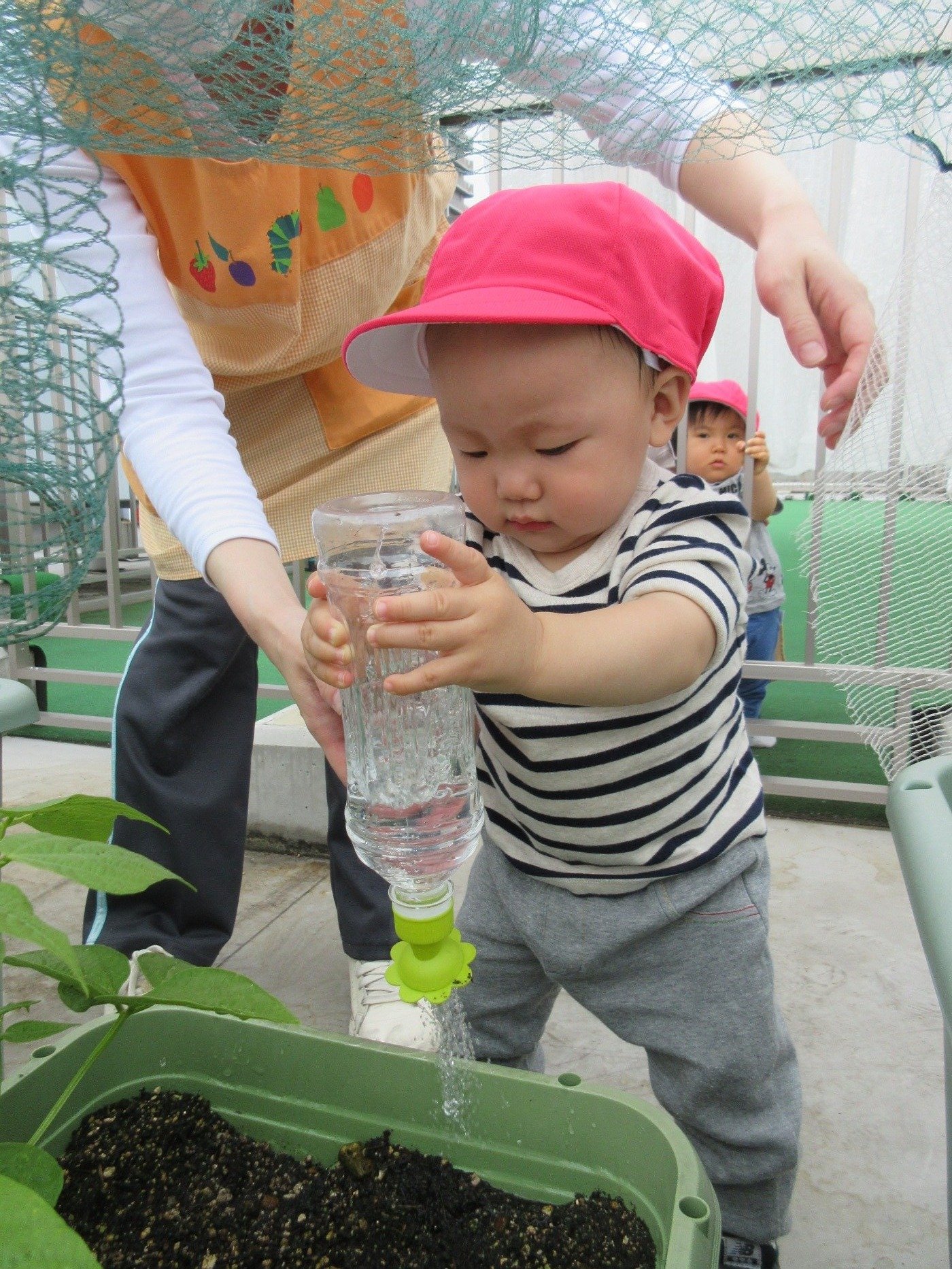 くま組さんの様子を見ていたうさぎ組さんも興味津々でお水やりをしてくれたよ。