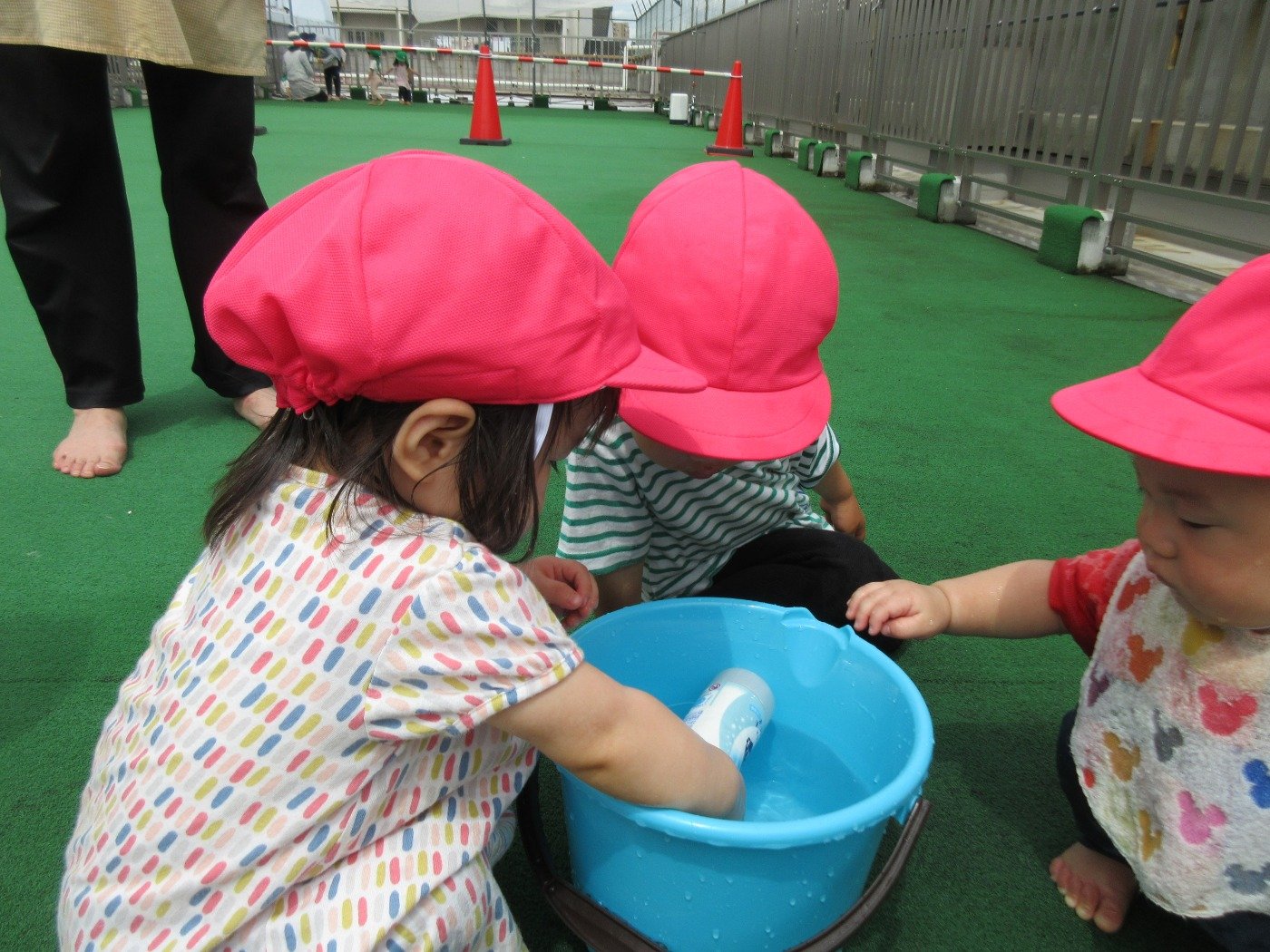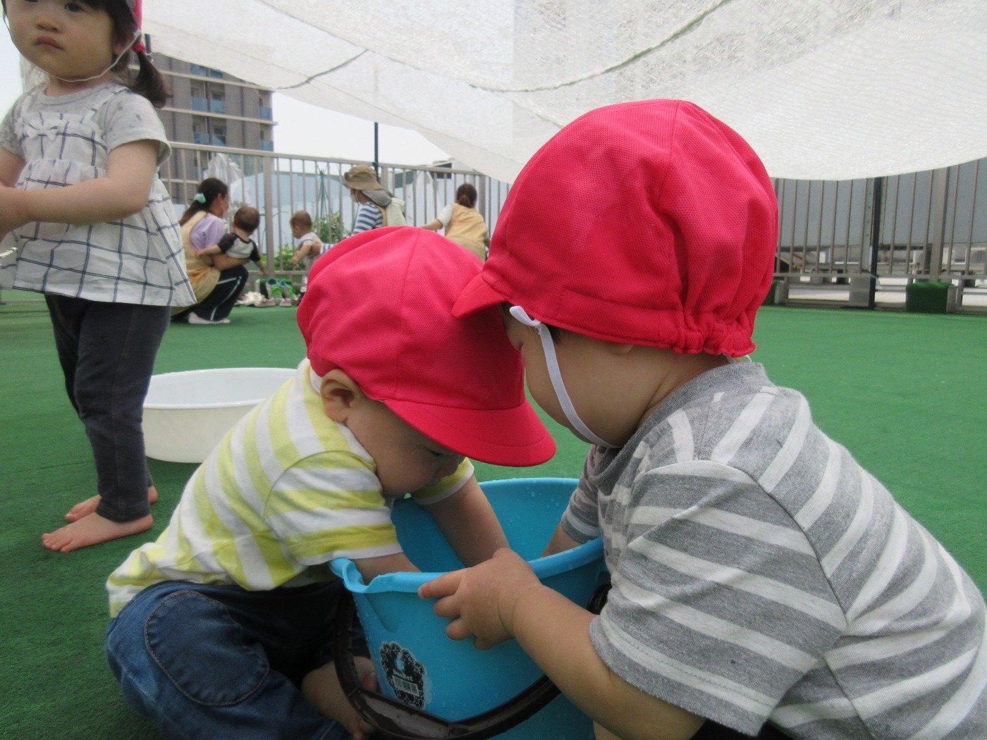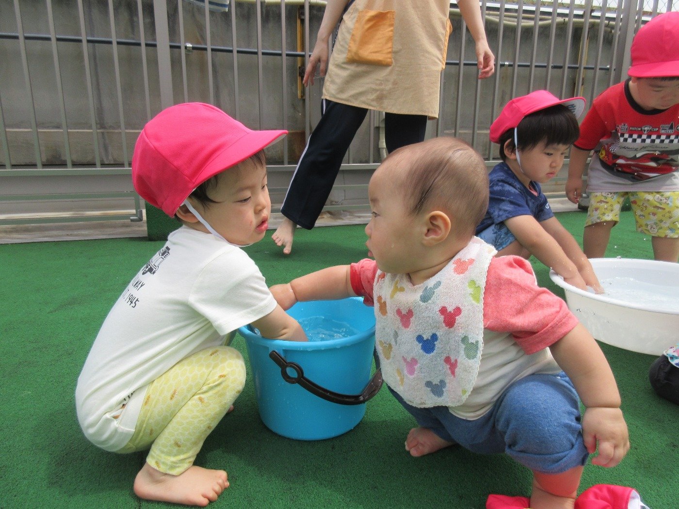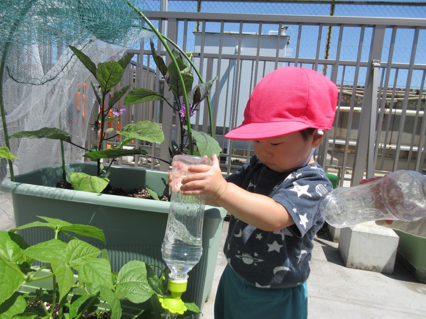 くま組さんの様子を見ていたうさぎ組さんも興味津々でお水やりをしてくれたよ。