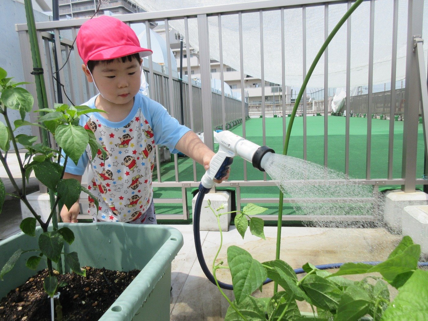 くま組さんが毎朝お世話してくれている屋上野菜。