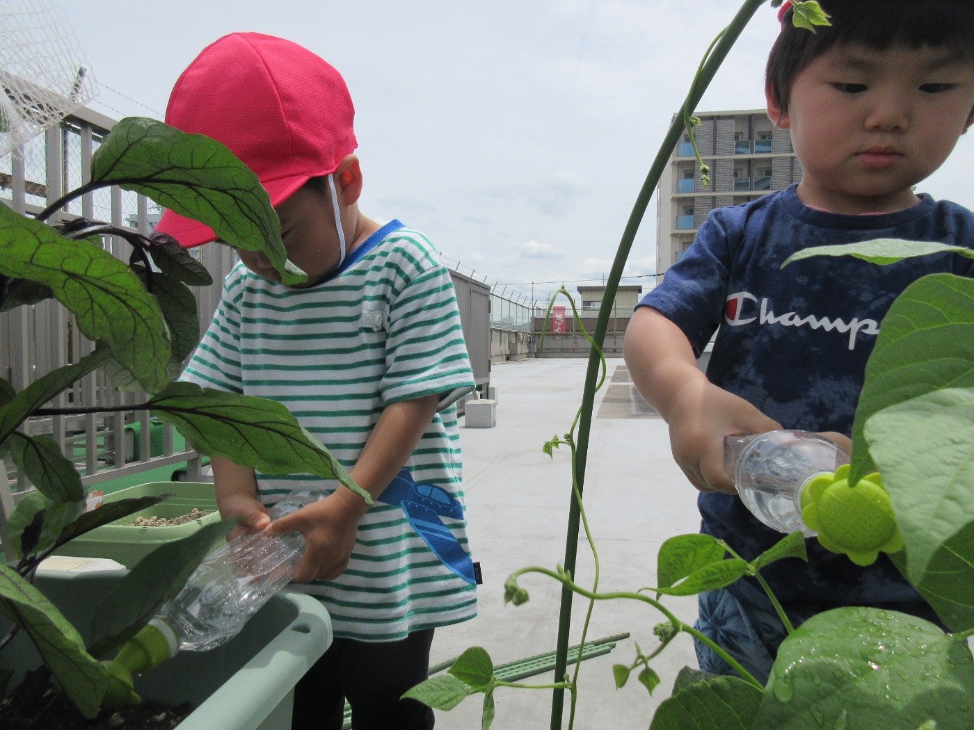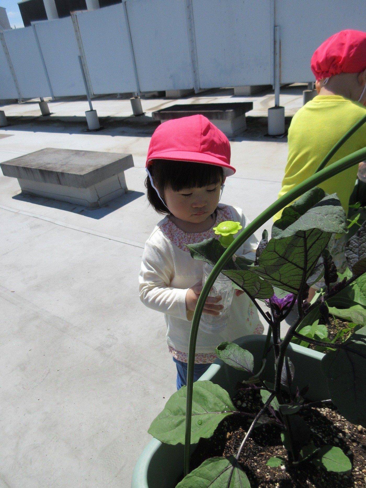 赤ちゃんナスビを見つけたお友だちの「かわいい~」の一言に