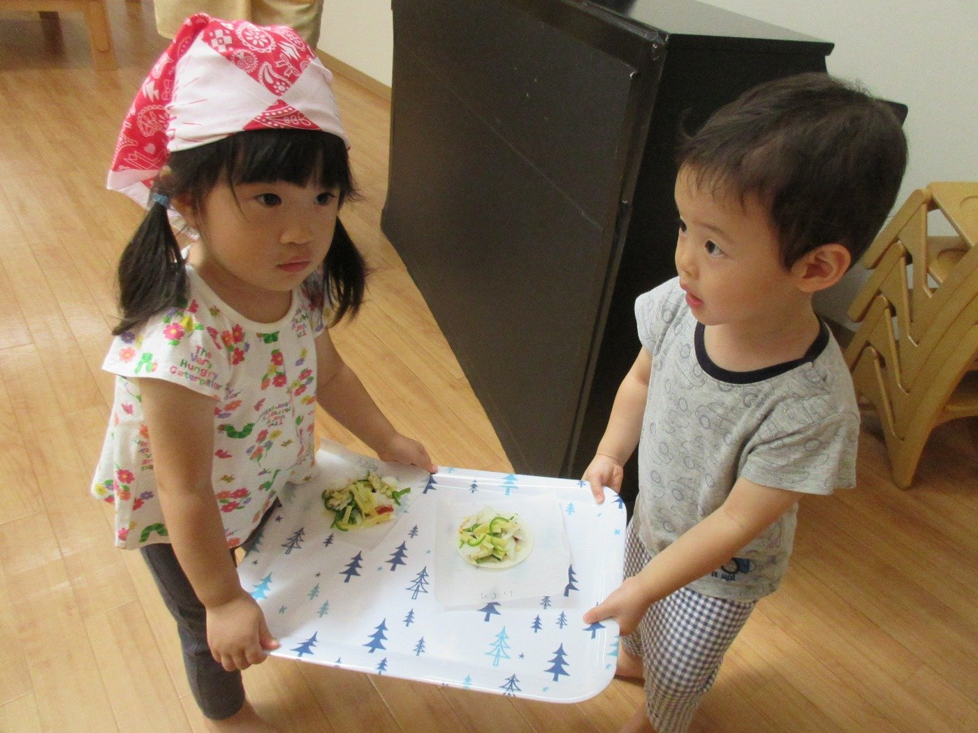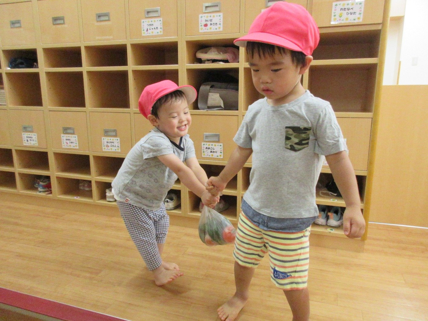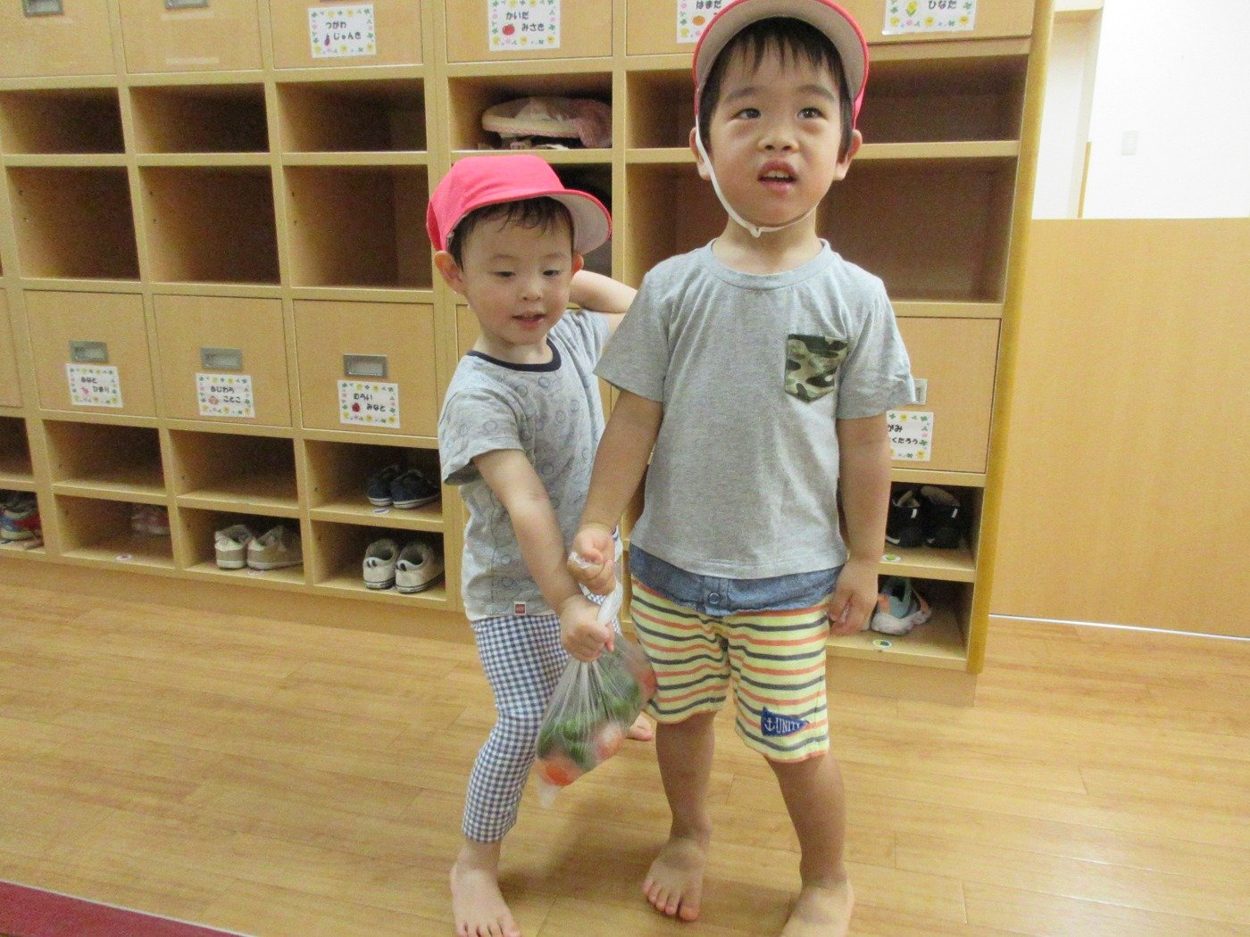 夏野菜をたくさん持ってくま組さんが帰って来ました。