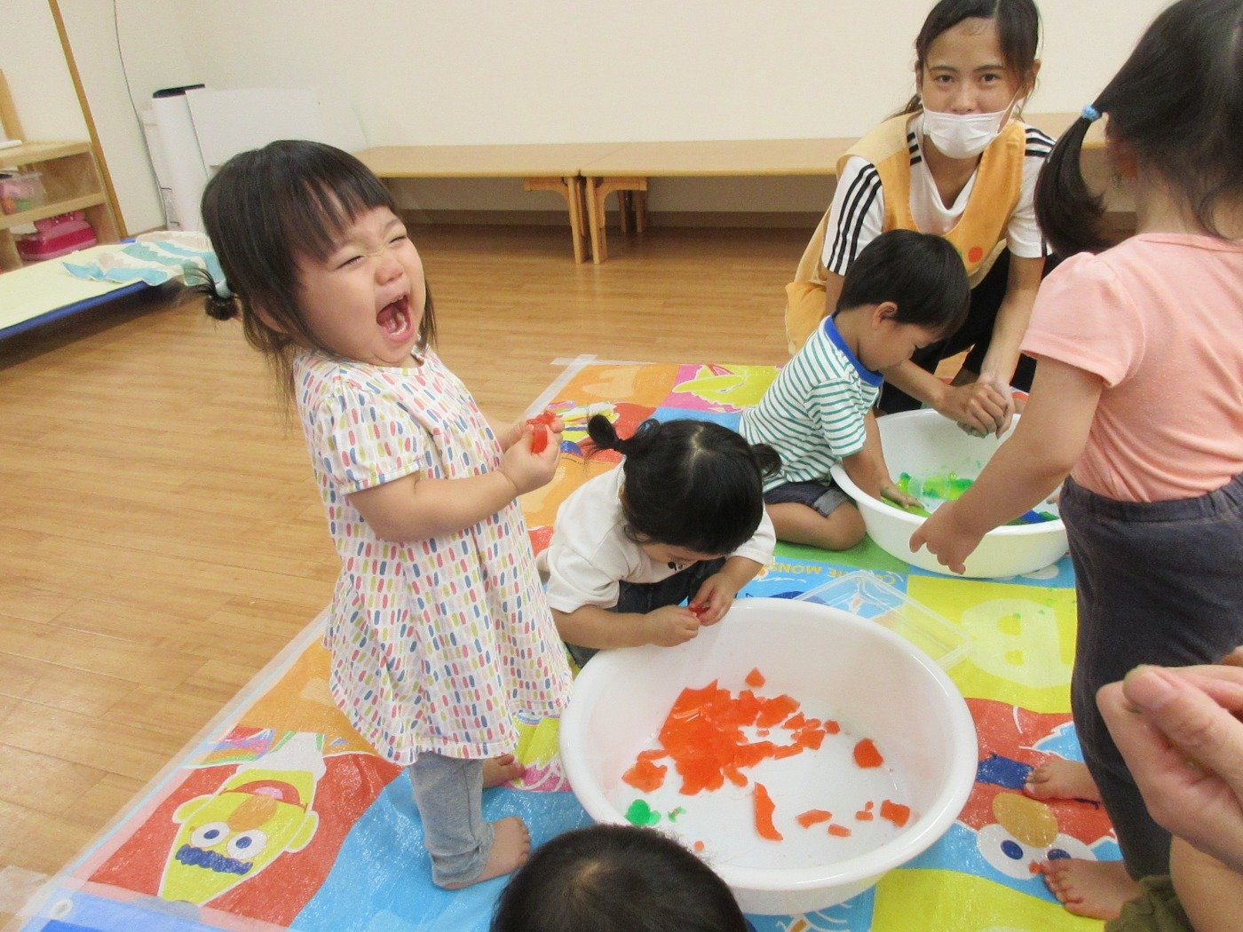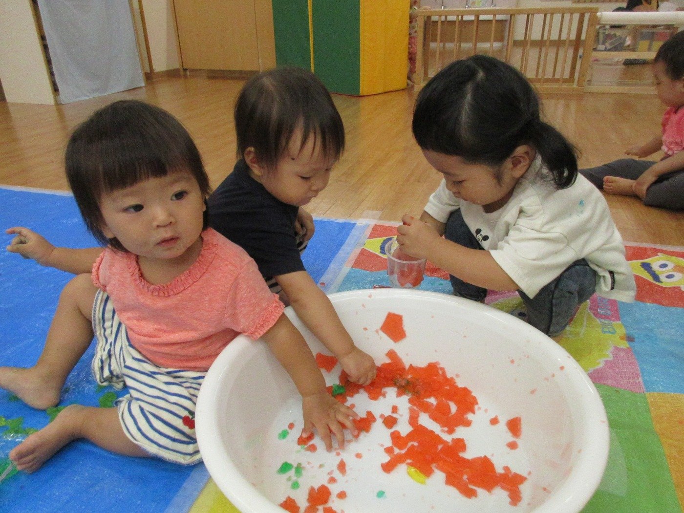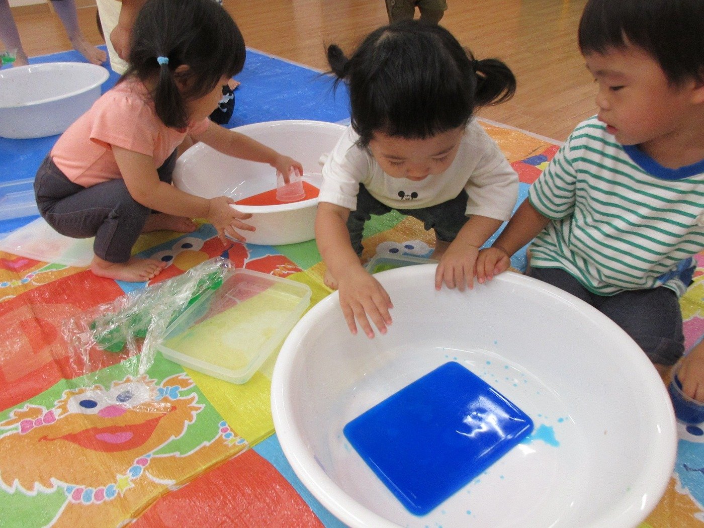 スライムに、氷。 泡遊びに、ひんやり寒天。