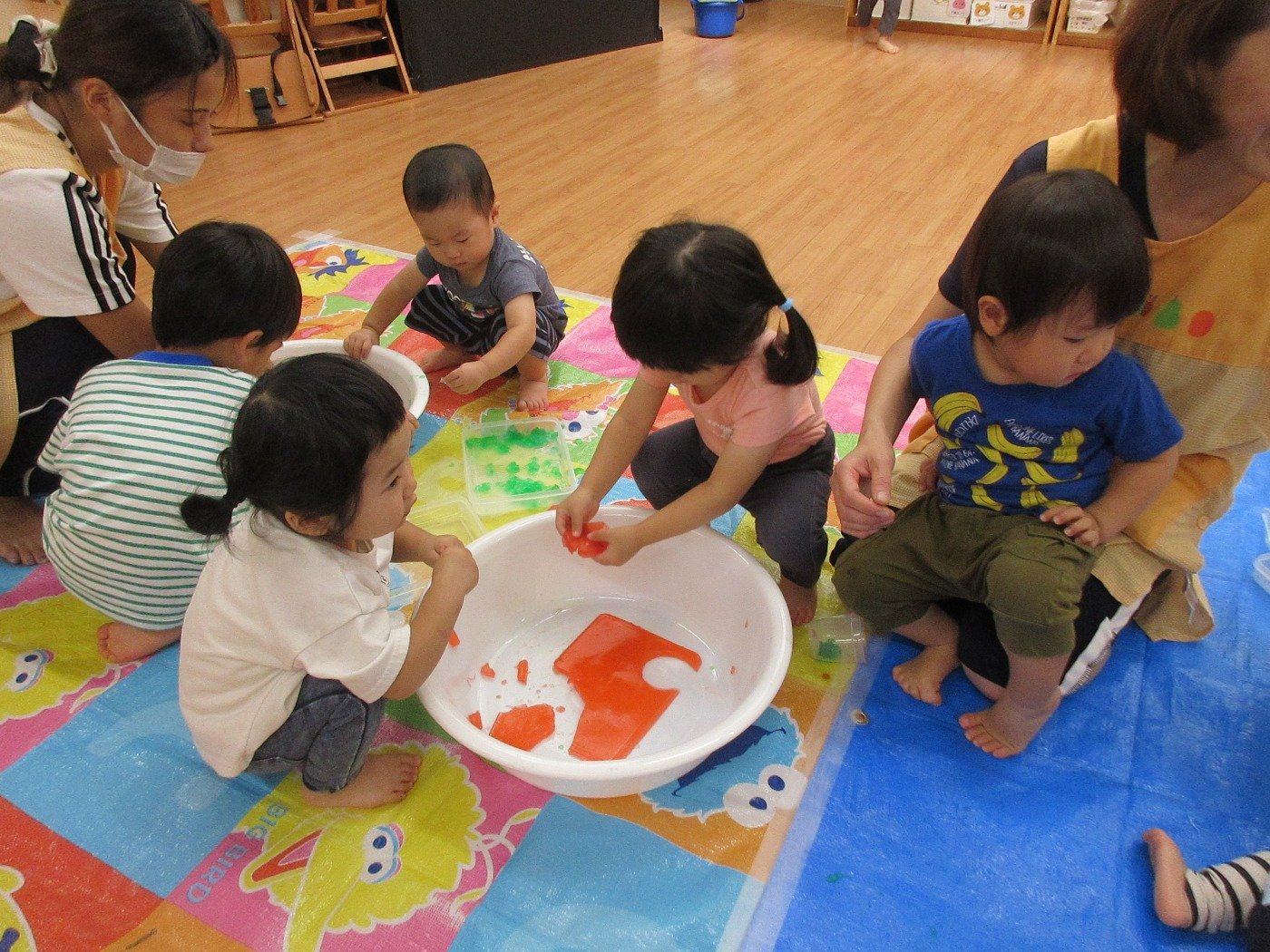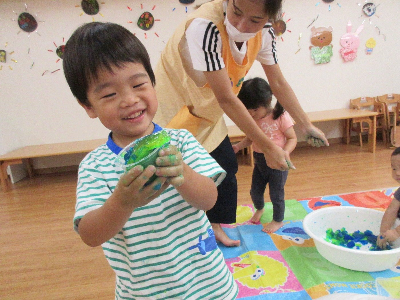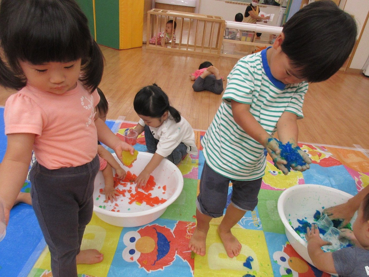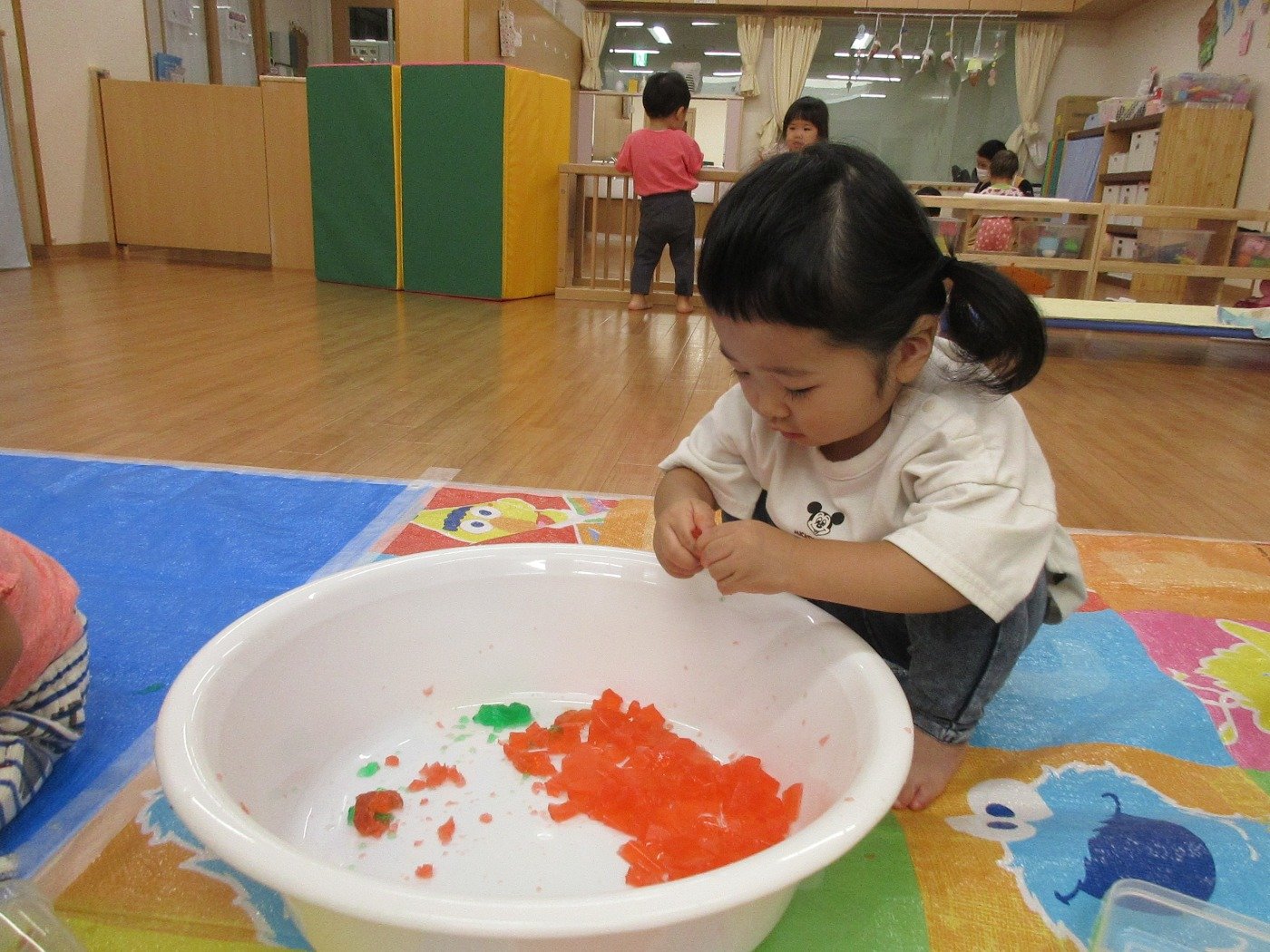 スライムに、氷。 泡遊びに、ひんやり寒天。