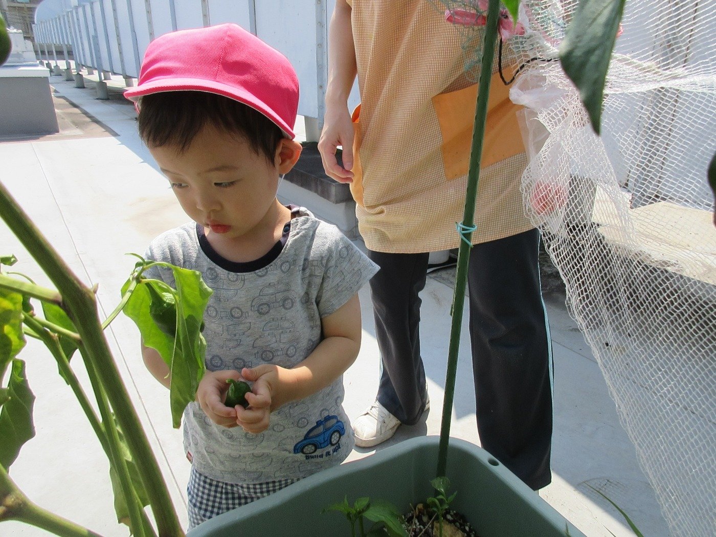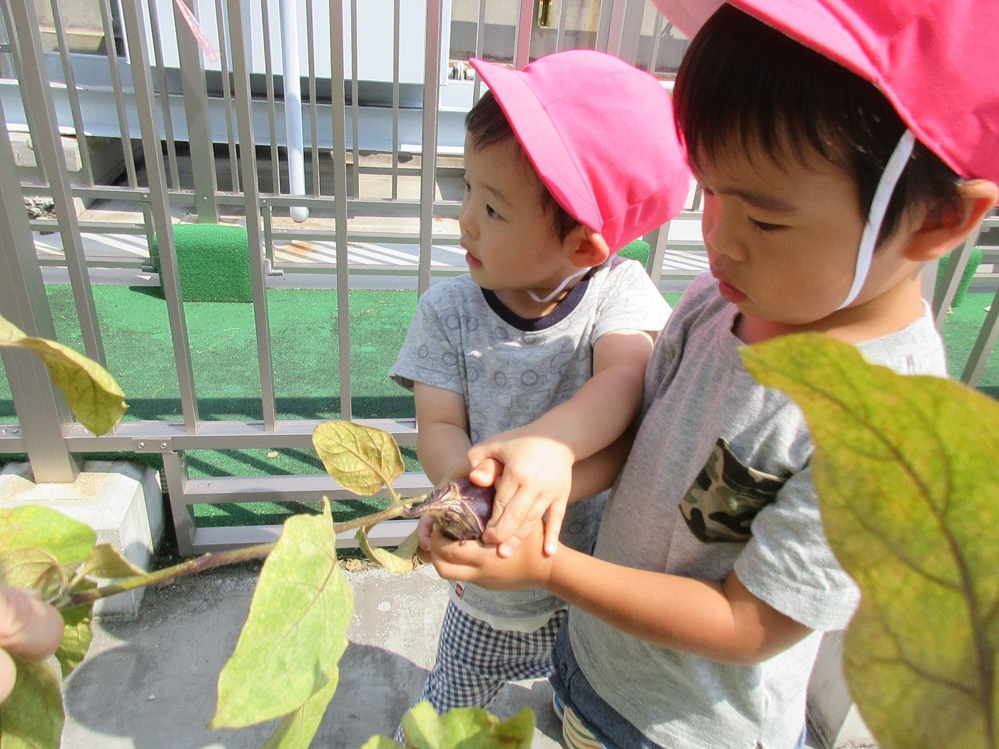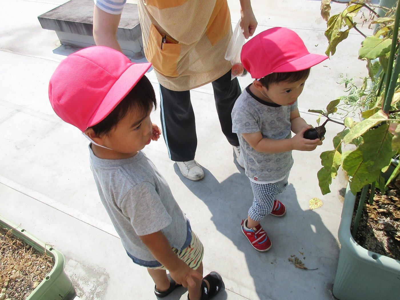 「あった!」「なすびだ!」「ピーマンもいっぱいあるよ!」