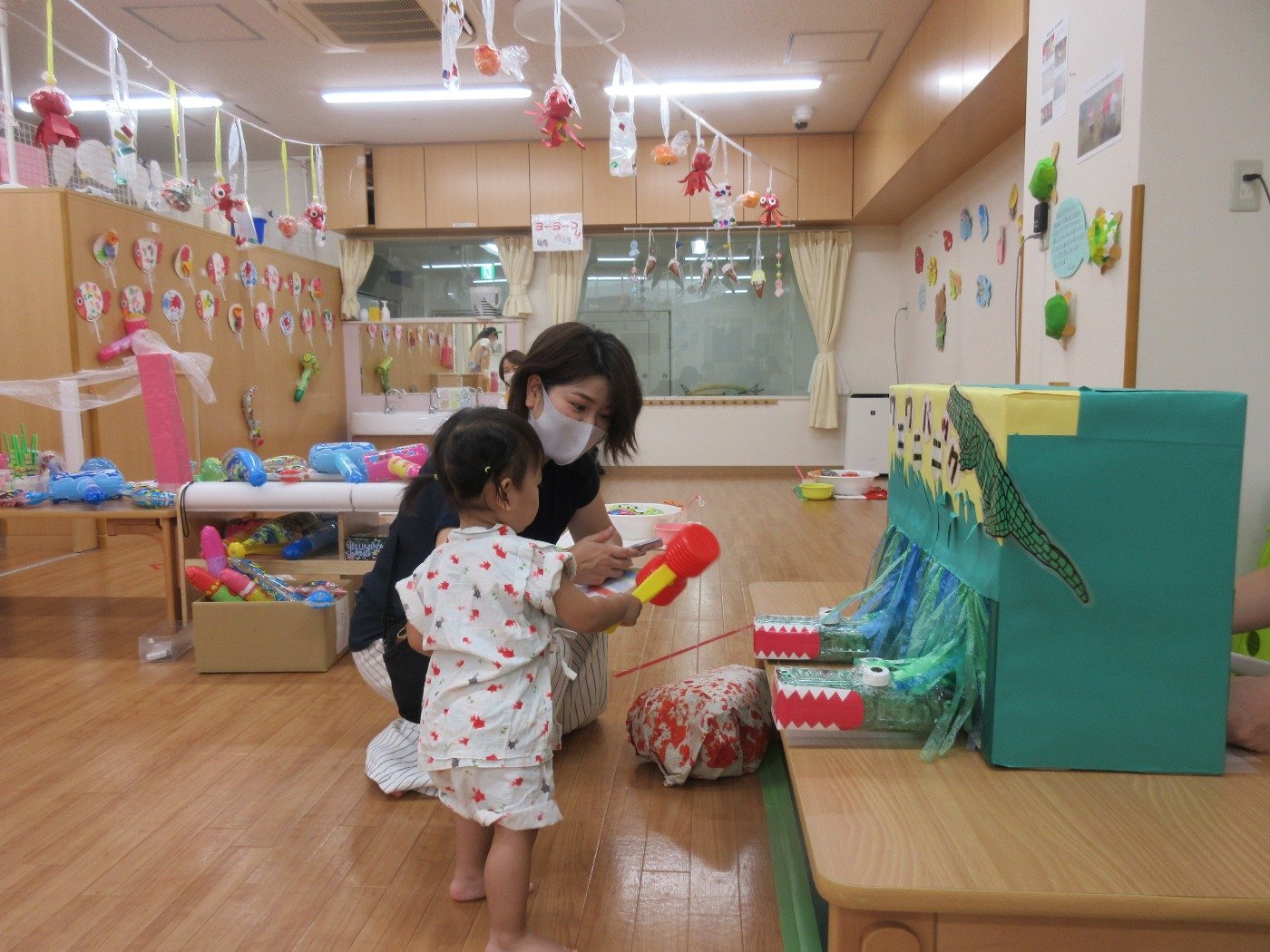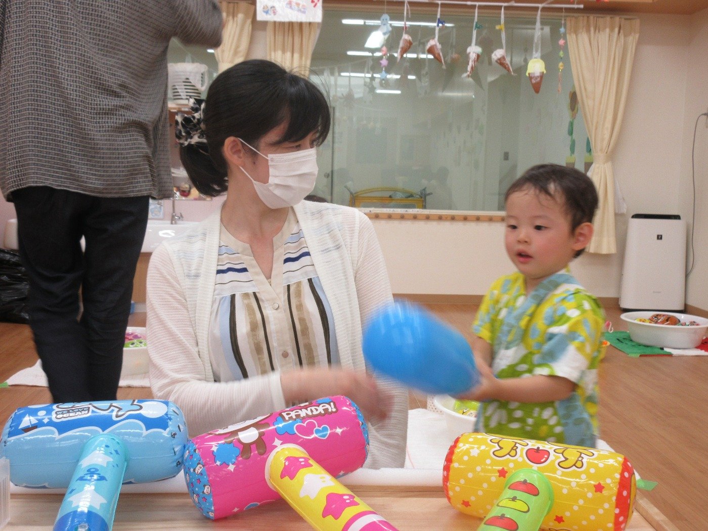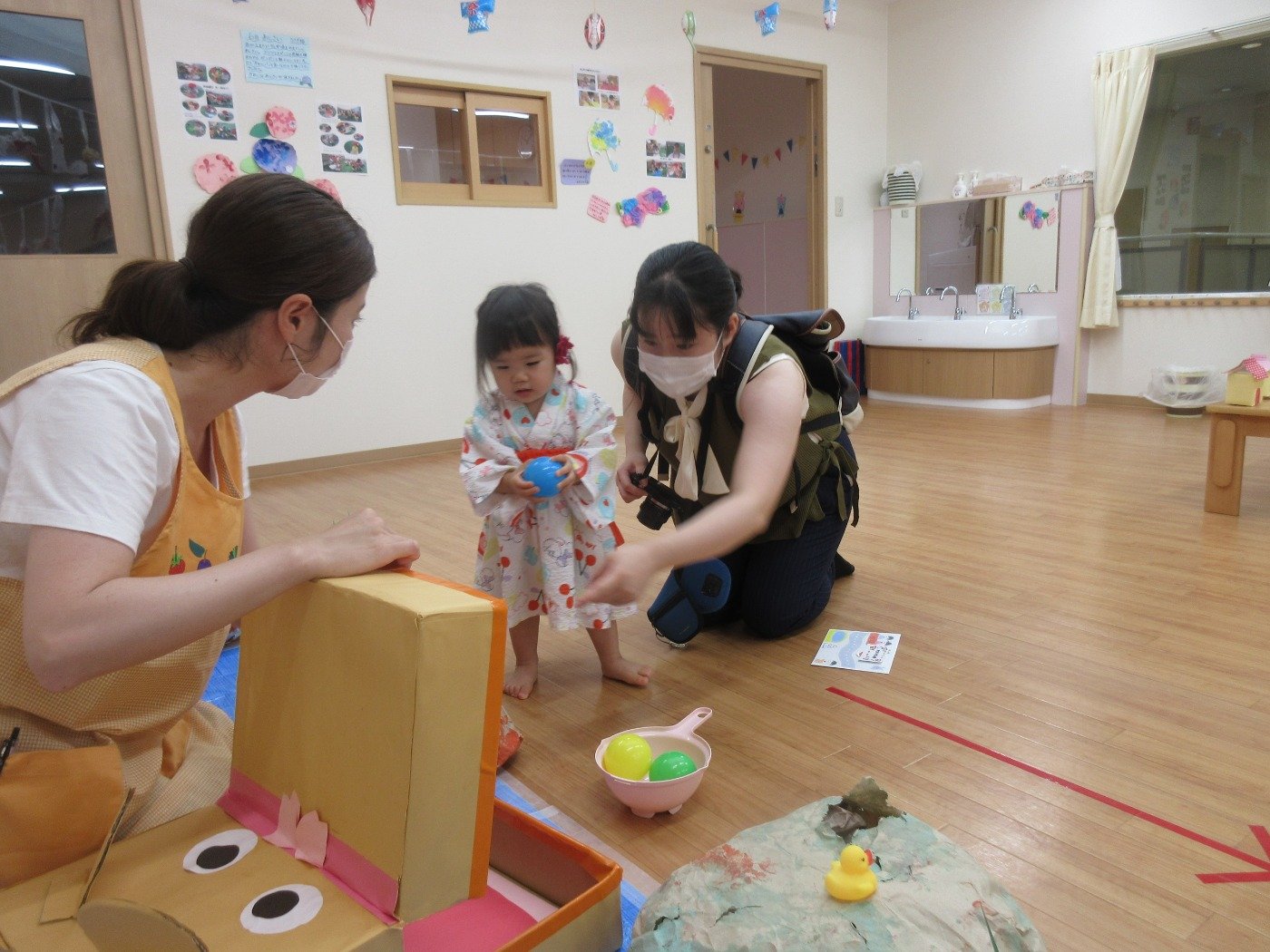 「お祭り遊び」で、一足お先に楽しんでいたくま組さんは、