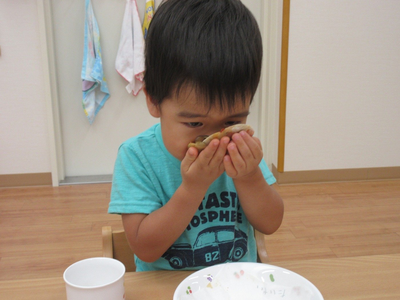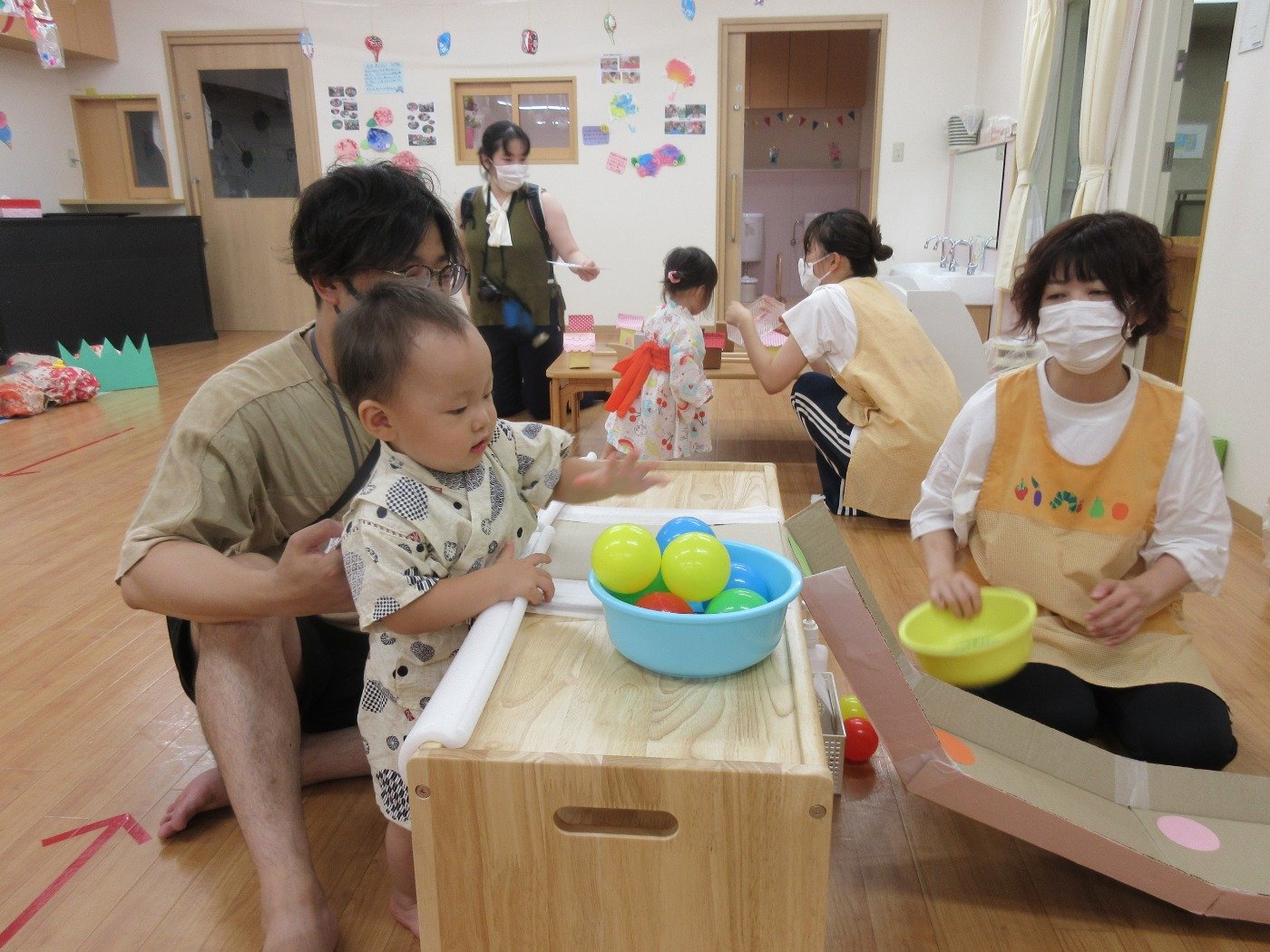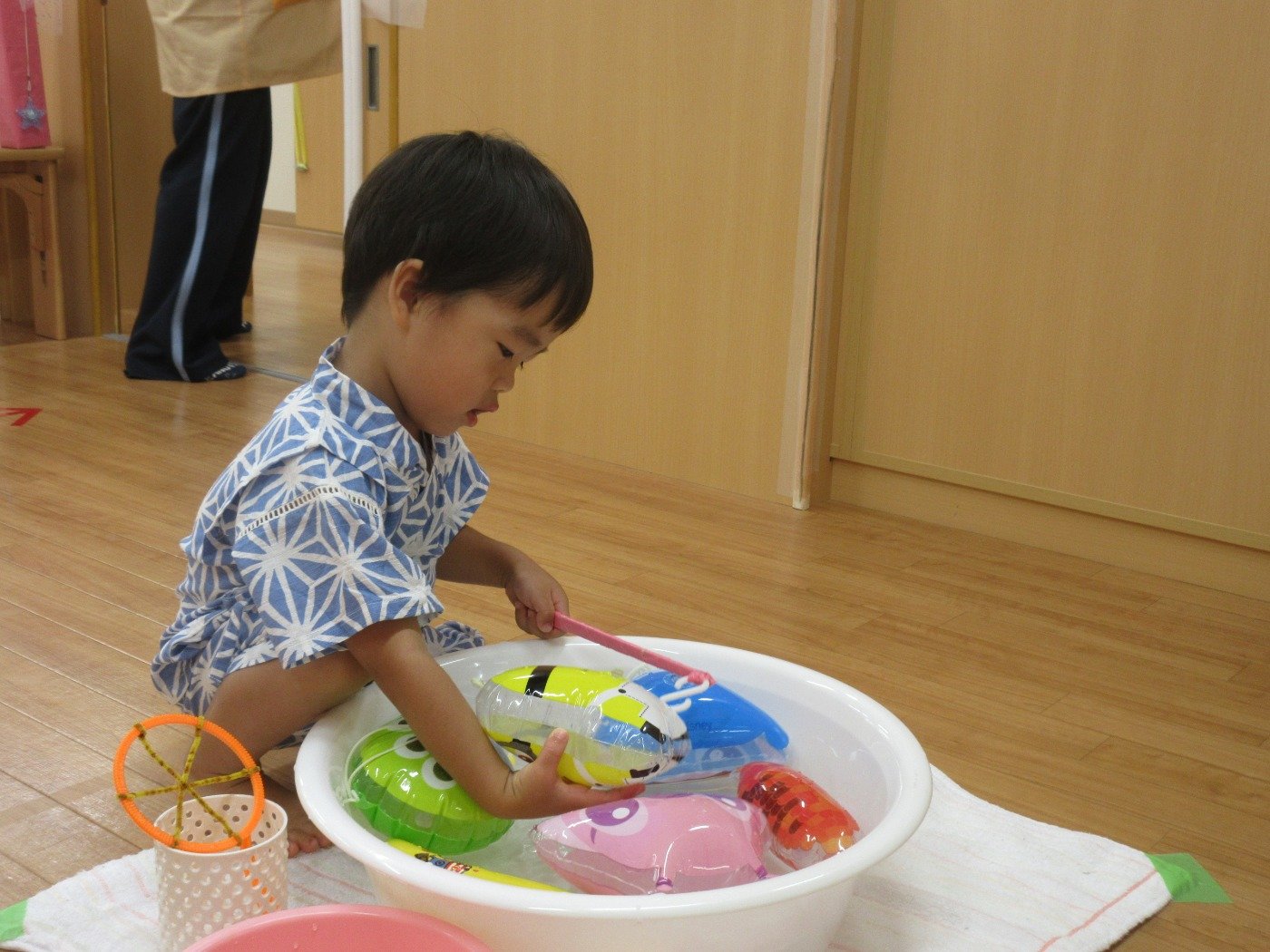 「お祭り遊び」で、一足お先に楽しんでいたくま組さんは、