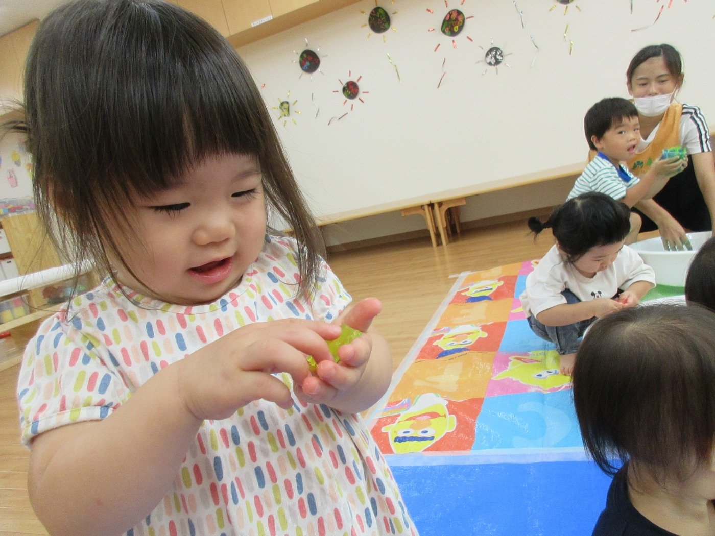 そこで、お部屋の中でも楽しめる「夏遊び」をしました(^^)