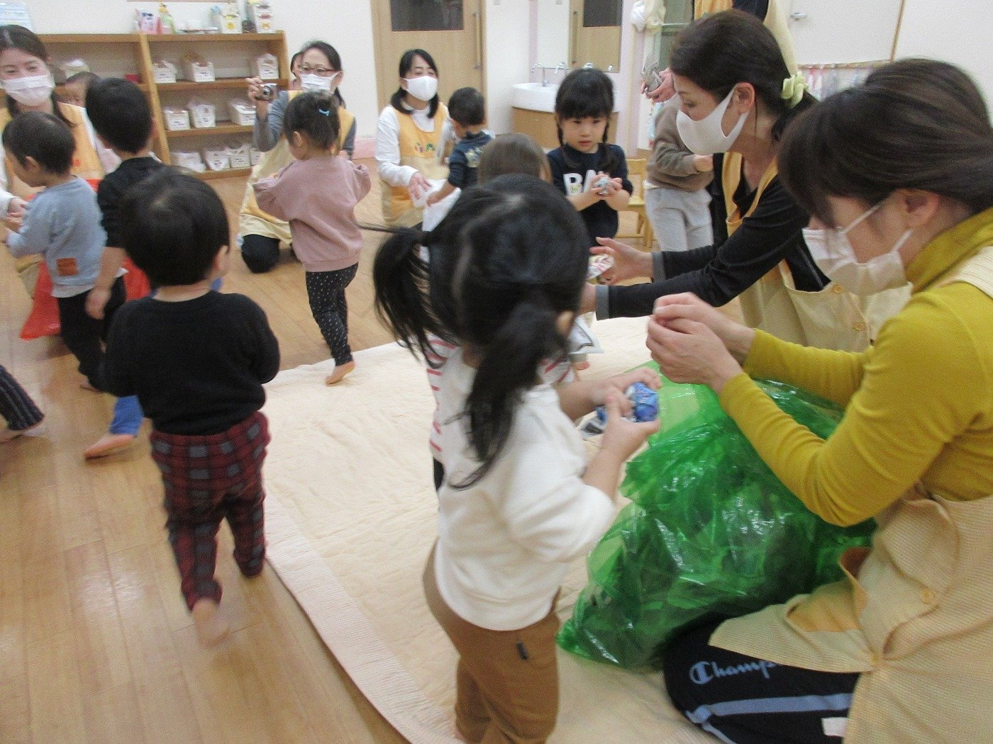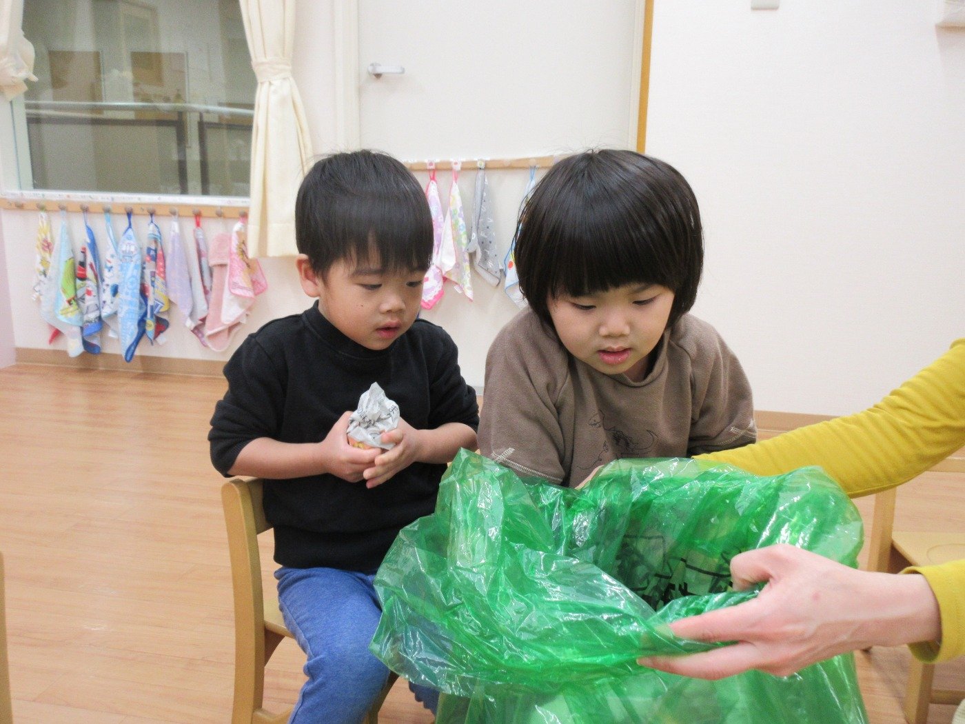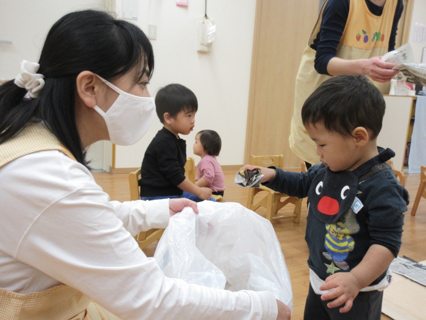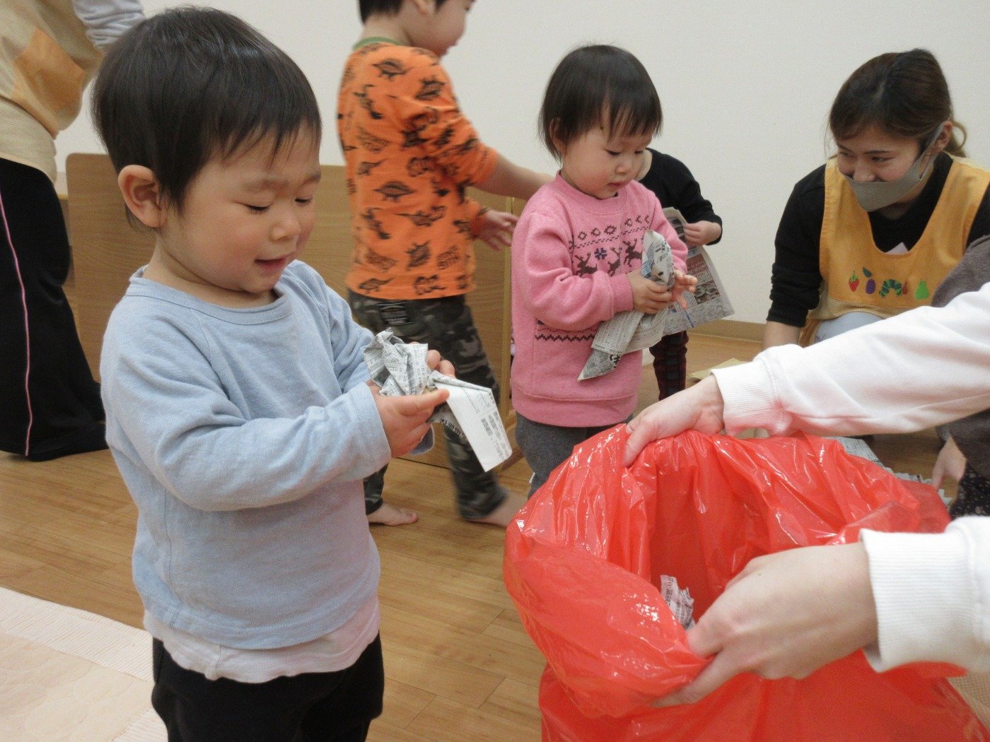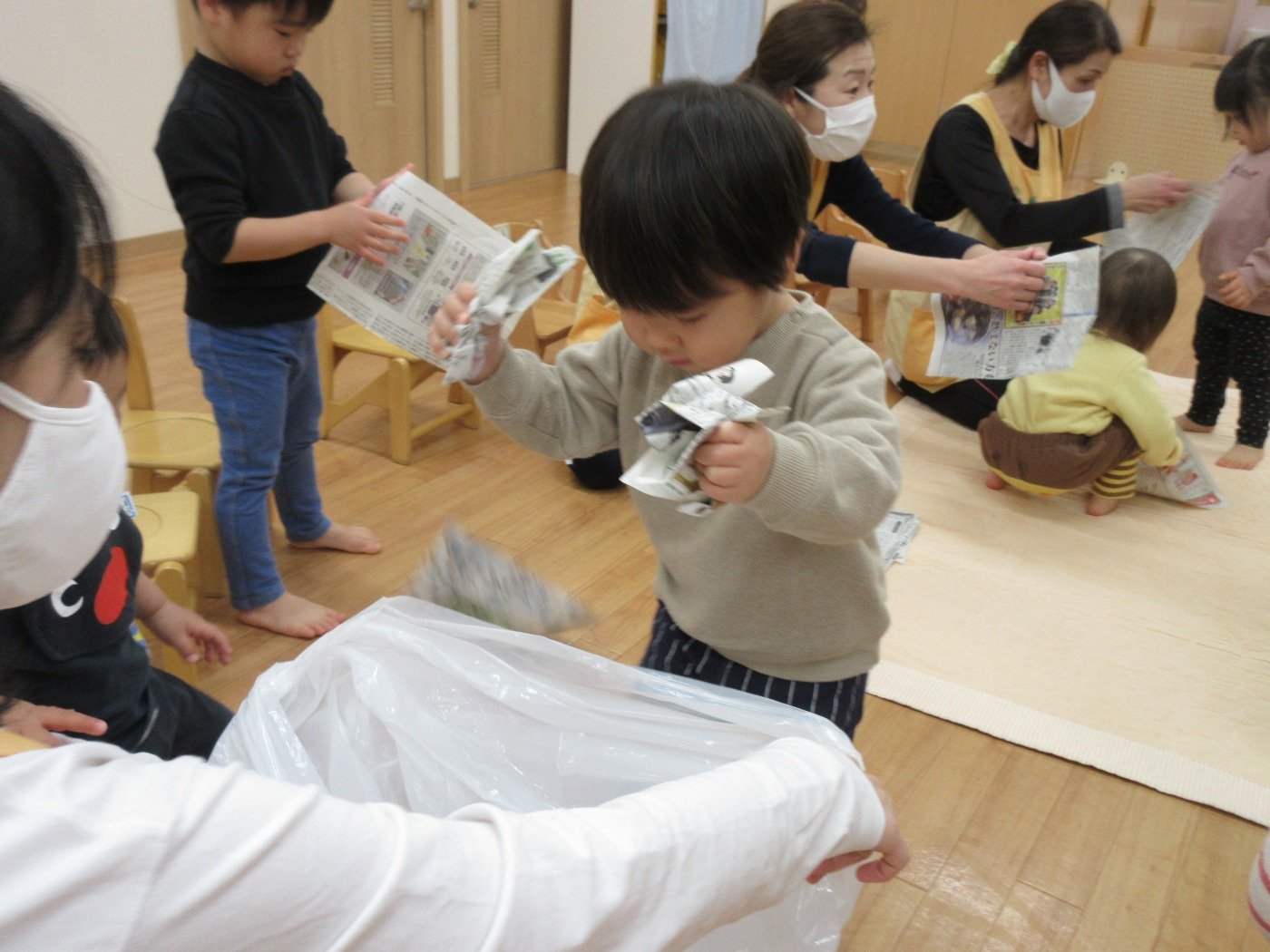 「見て(^^) できたよ!」と、始めは丁寧に丸めていた子どもたちですが、