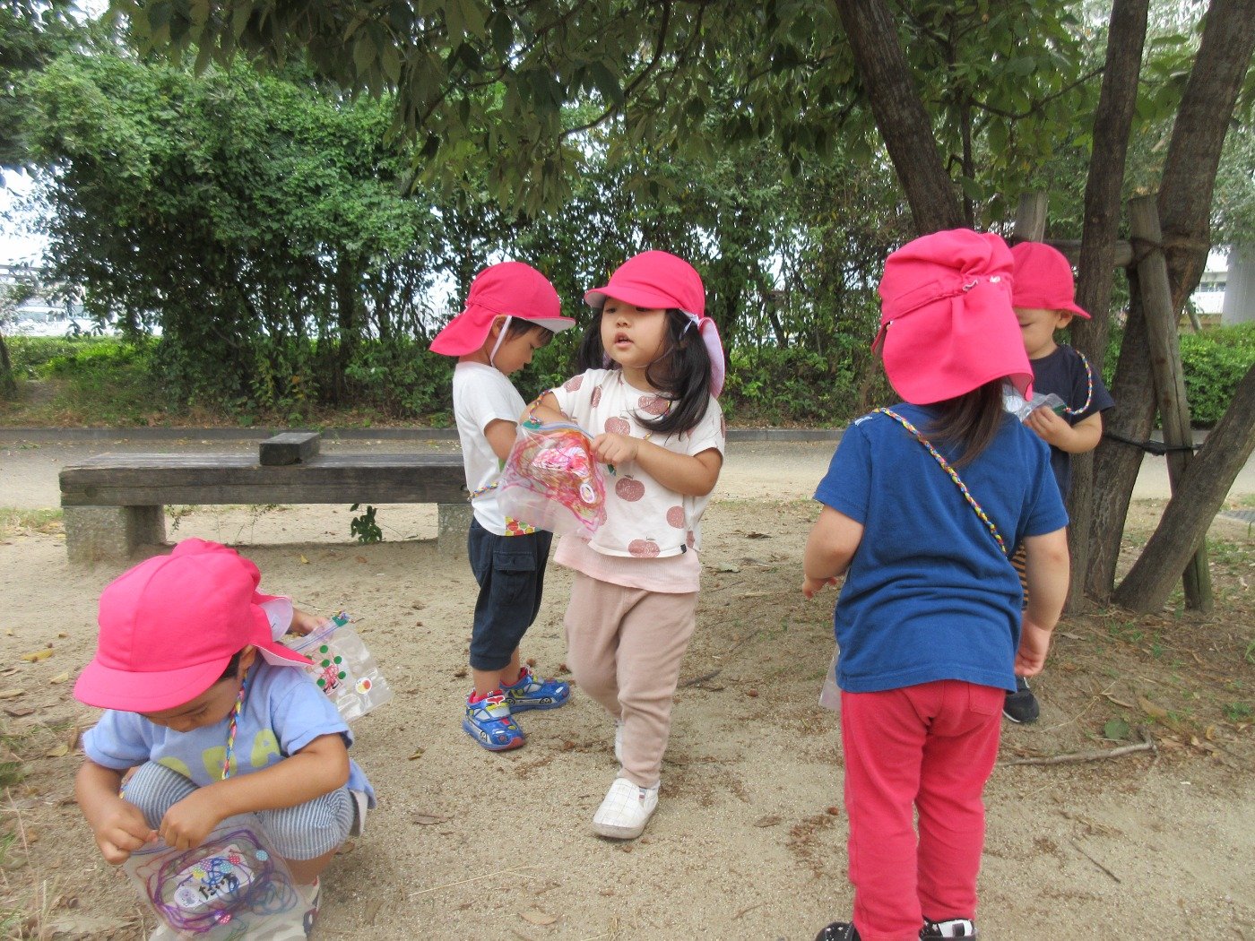 秋をみつけたよ ホームブログ 2021.10.13 くまぐみさん☆ お友だちは水筒をかけて準備万端!!秋を探しに出発です。 公園ではどんぐりや落ち葉がいっぱいで 子ども達は探すのに夢中♪ 帰ってきた子ども達は、とってもいいお顔でどんぐりいっぱいあったよー と教えてくれていました。 こかれから、たくさん秋を探しに行ってみたいと思います♬