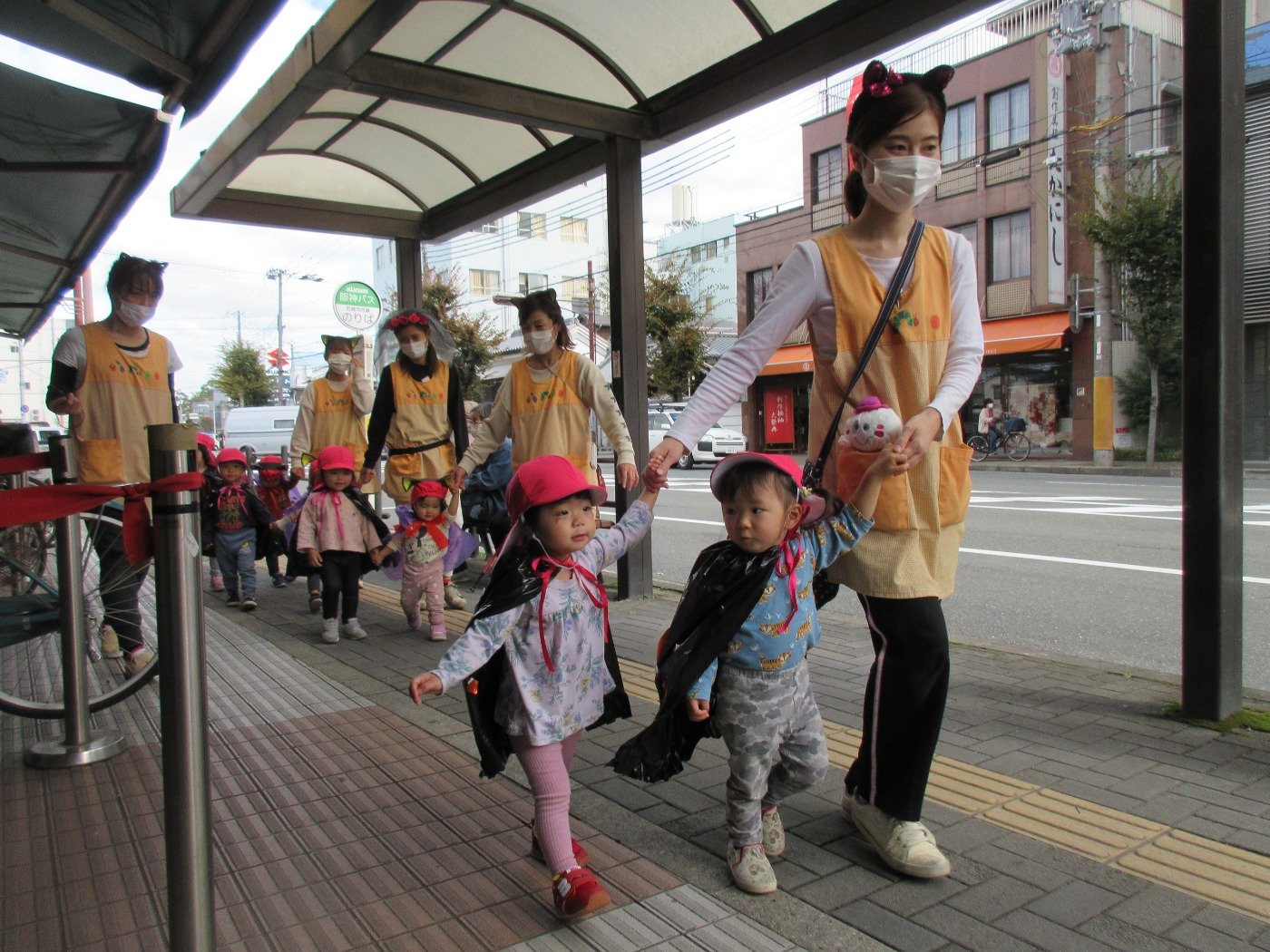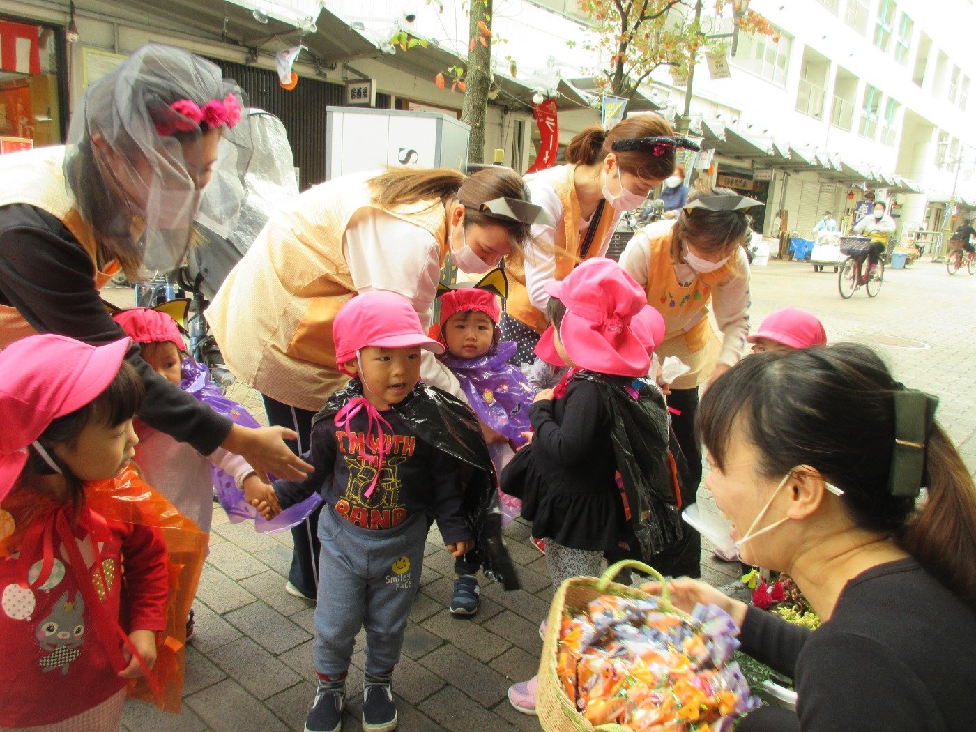 商店街では、嬉しそうに「ハッピーハロウィン🎃」と