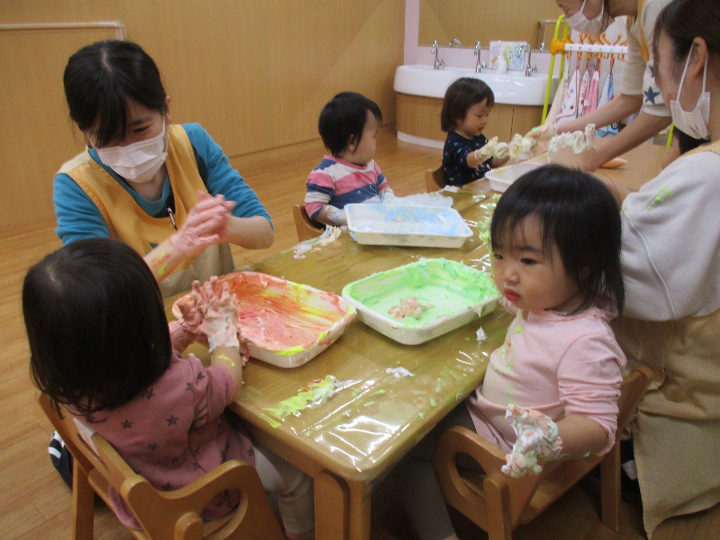 にじぐみさん ホームブログ 2021.11.05 今日は、、、 不思議な「ふわふわ」の感触を楽しにました♪ 子ども達も、ふわふわの感触にとっても楽しそうに 遊んでいました😊 ふわふわの感触は、気持ち良かったのかな? さぁー 来週もたくさん元気いっぱいに遊びたいと思います。