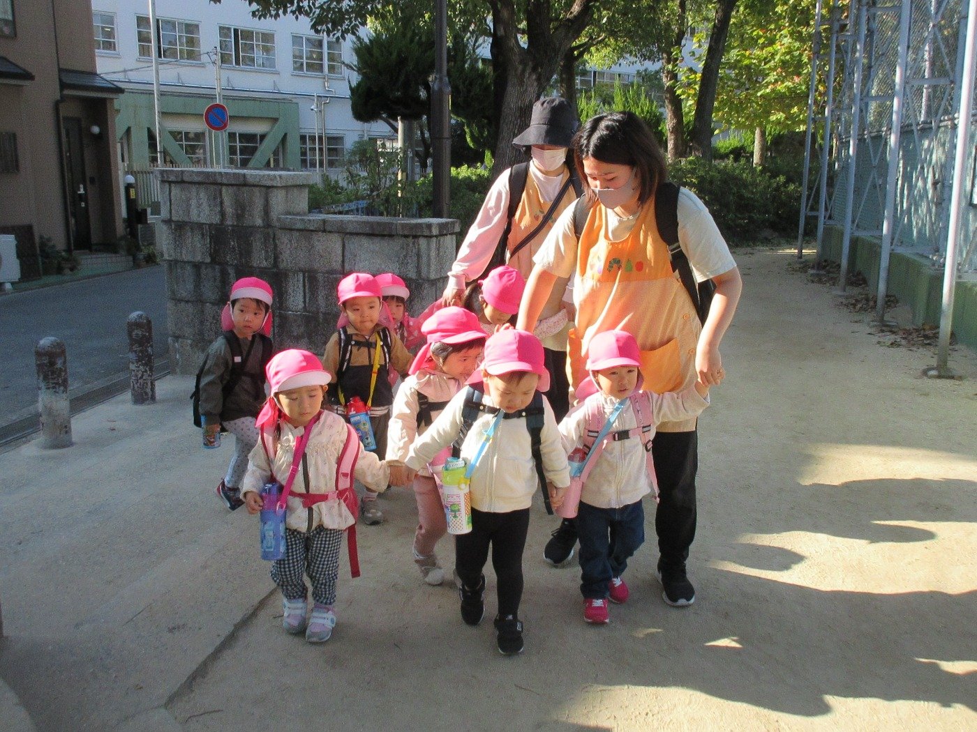 遠足は「たここうえん」、公園に行くまでに子ども達は道で会う人に、元気よく「おはようございます!!」