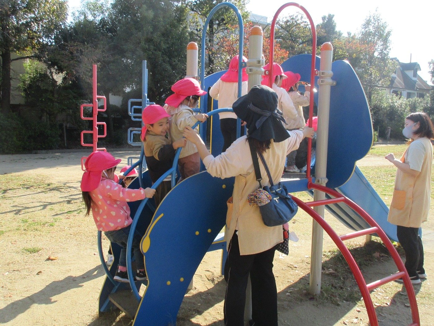 公園に到着して、先生とのお約束事をしてから遊具へ!!