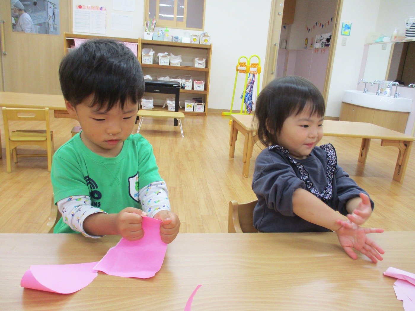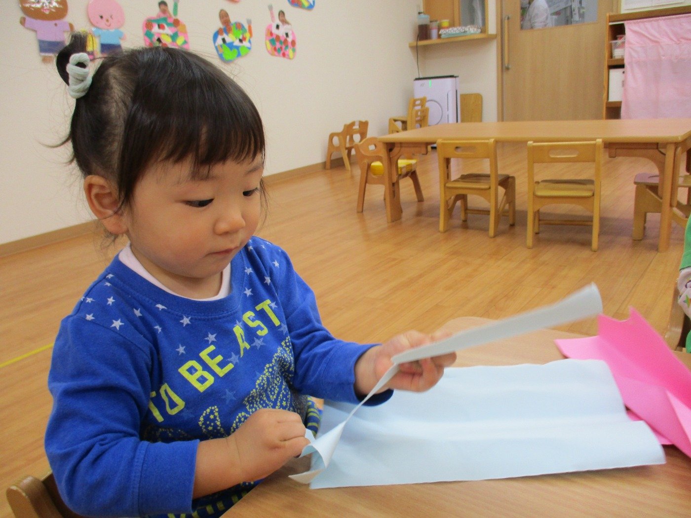 うさぎぐみさん ホームブログ 2021.11.11 今日は避難訓練で、船公園まで避難!! 先生のお話をしっかり聞いて上手に避難できました😊 少しお散歩してからお部屋で、紙をちぎって・・・・ちぎって さぁー、ちぎった紙はなにに変身するのかな? お楽しみに♫