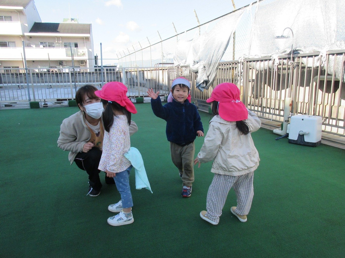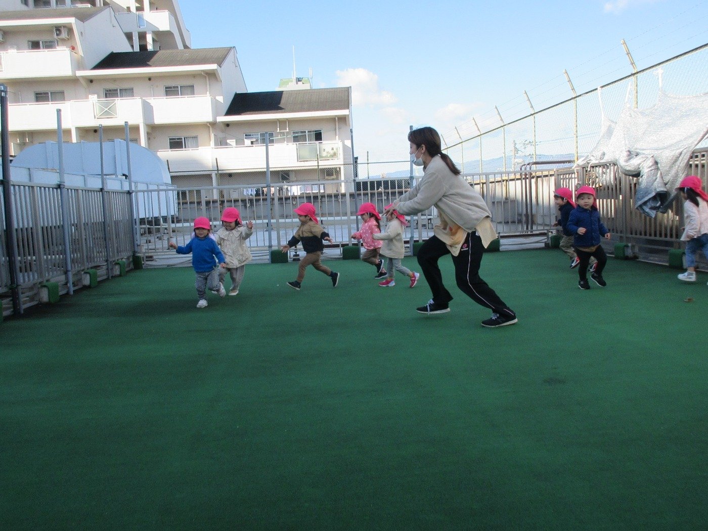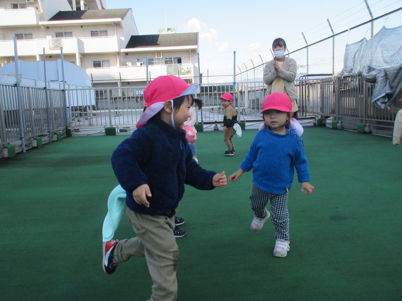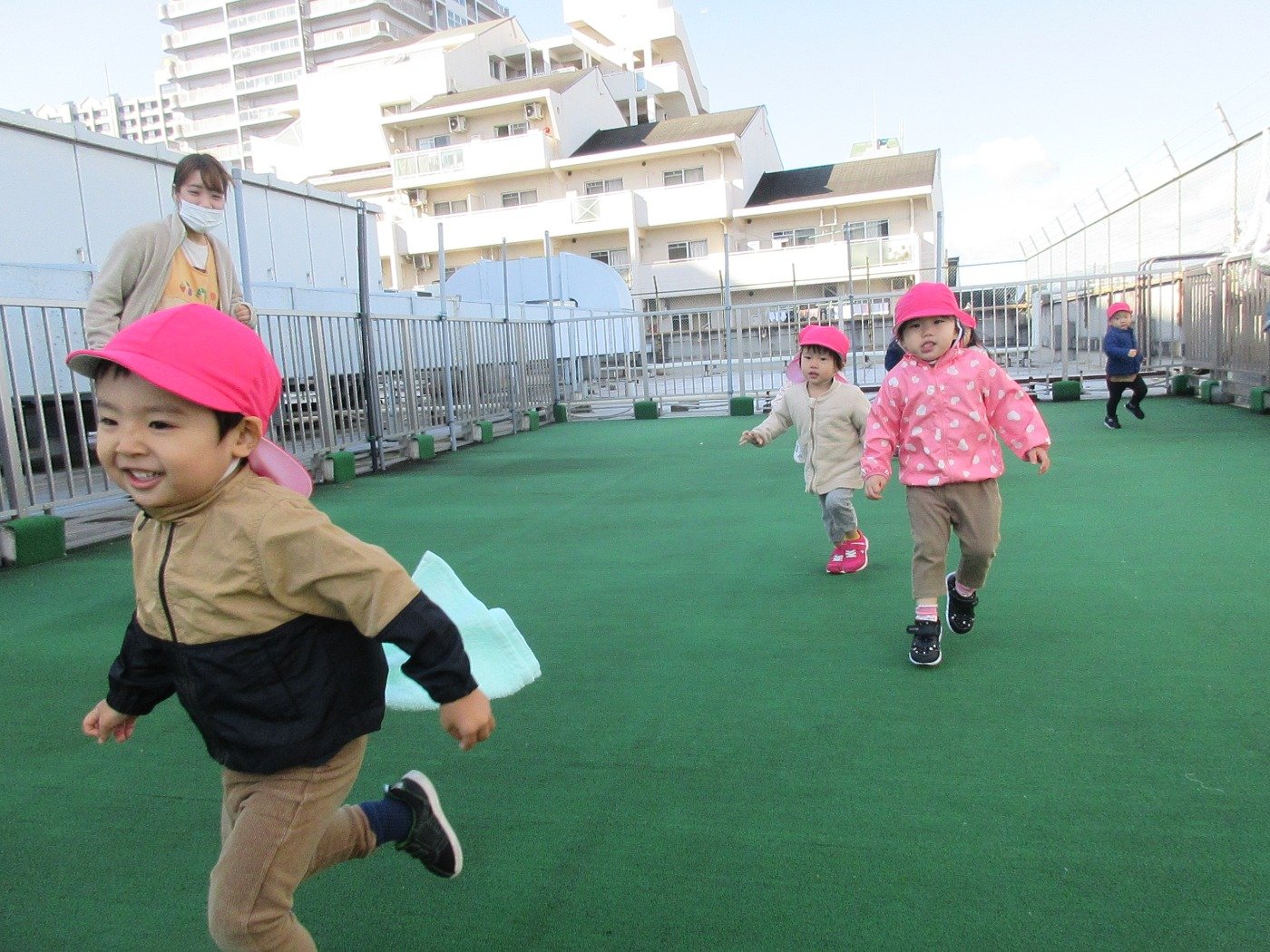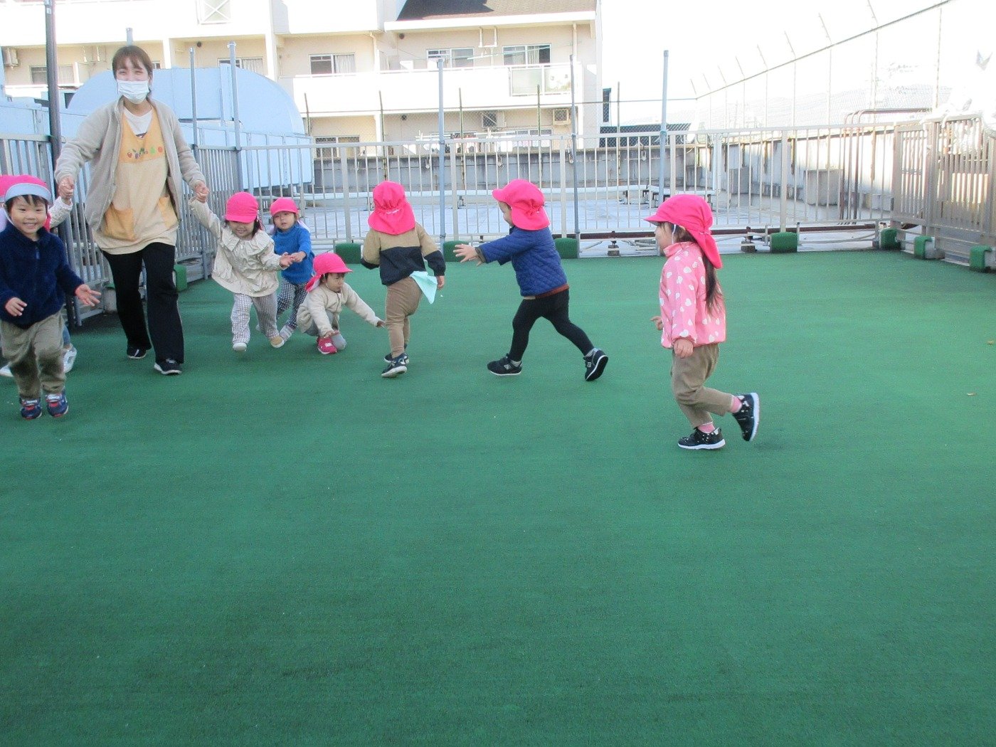 今日は、屋上で「しっぽとり」をしてたくさん体を
