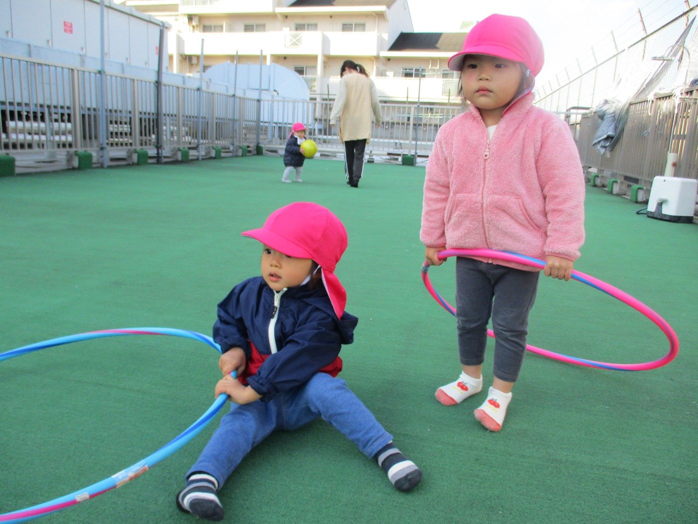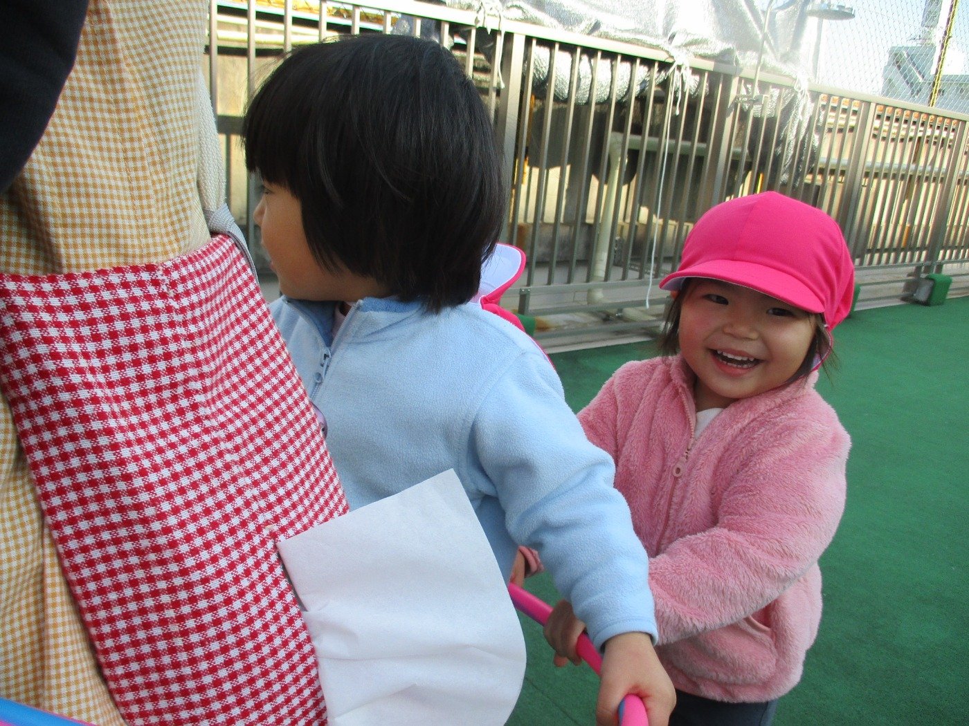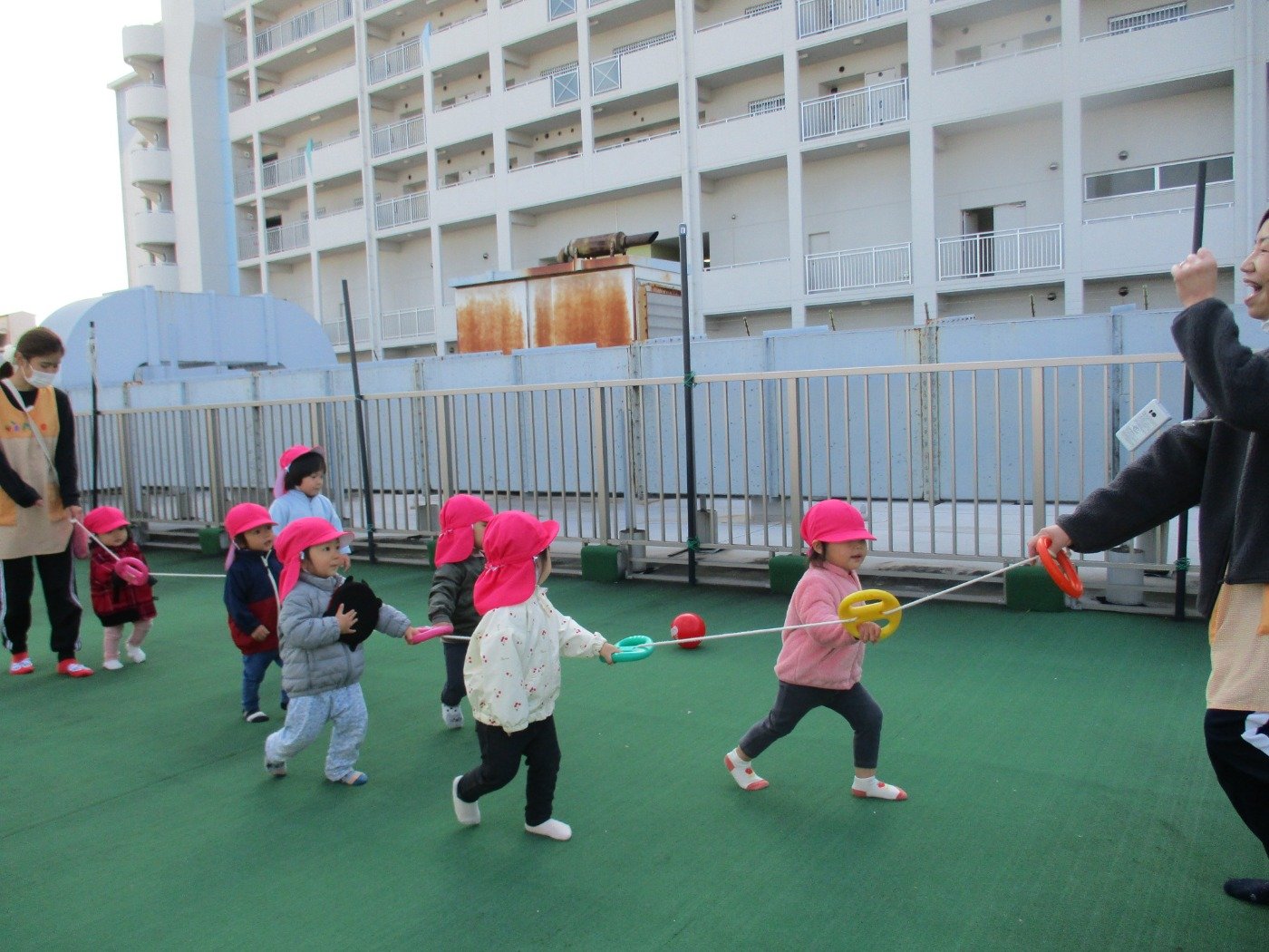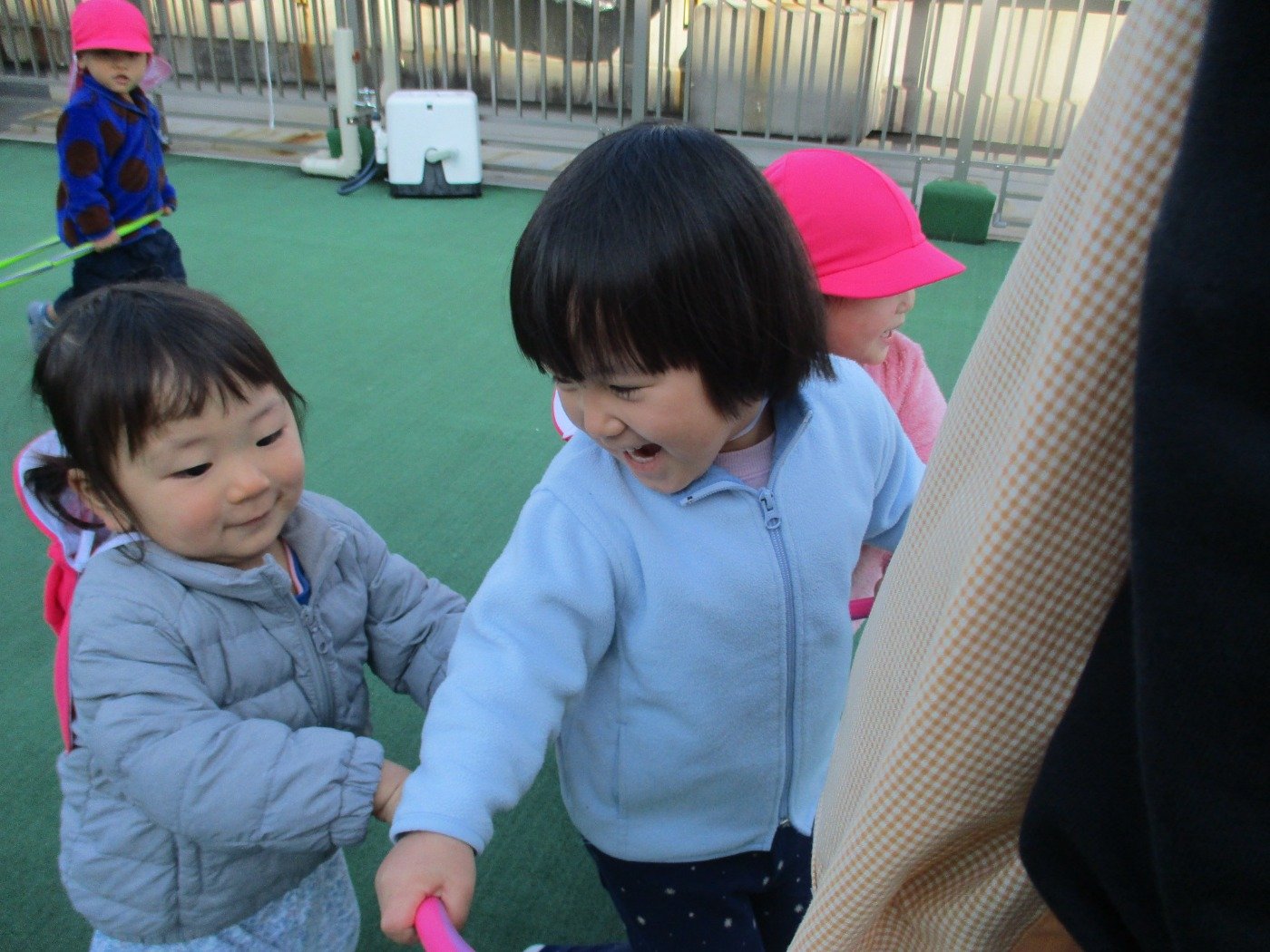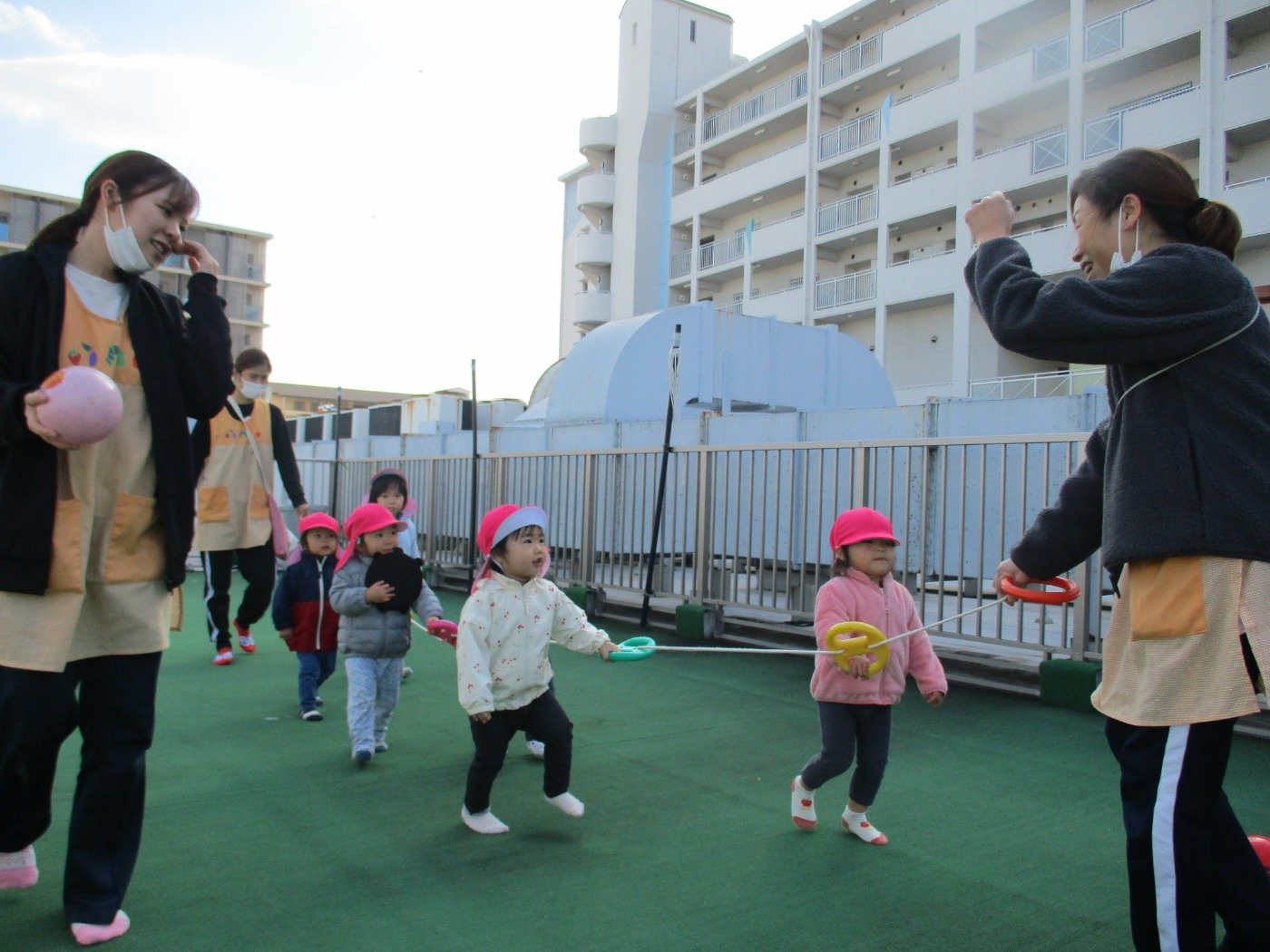 今日は、にじぐみさんとうさぎぐみさんは、一緒に屋上へ!!