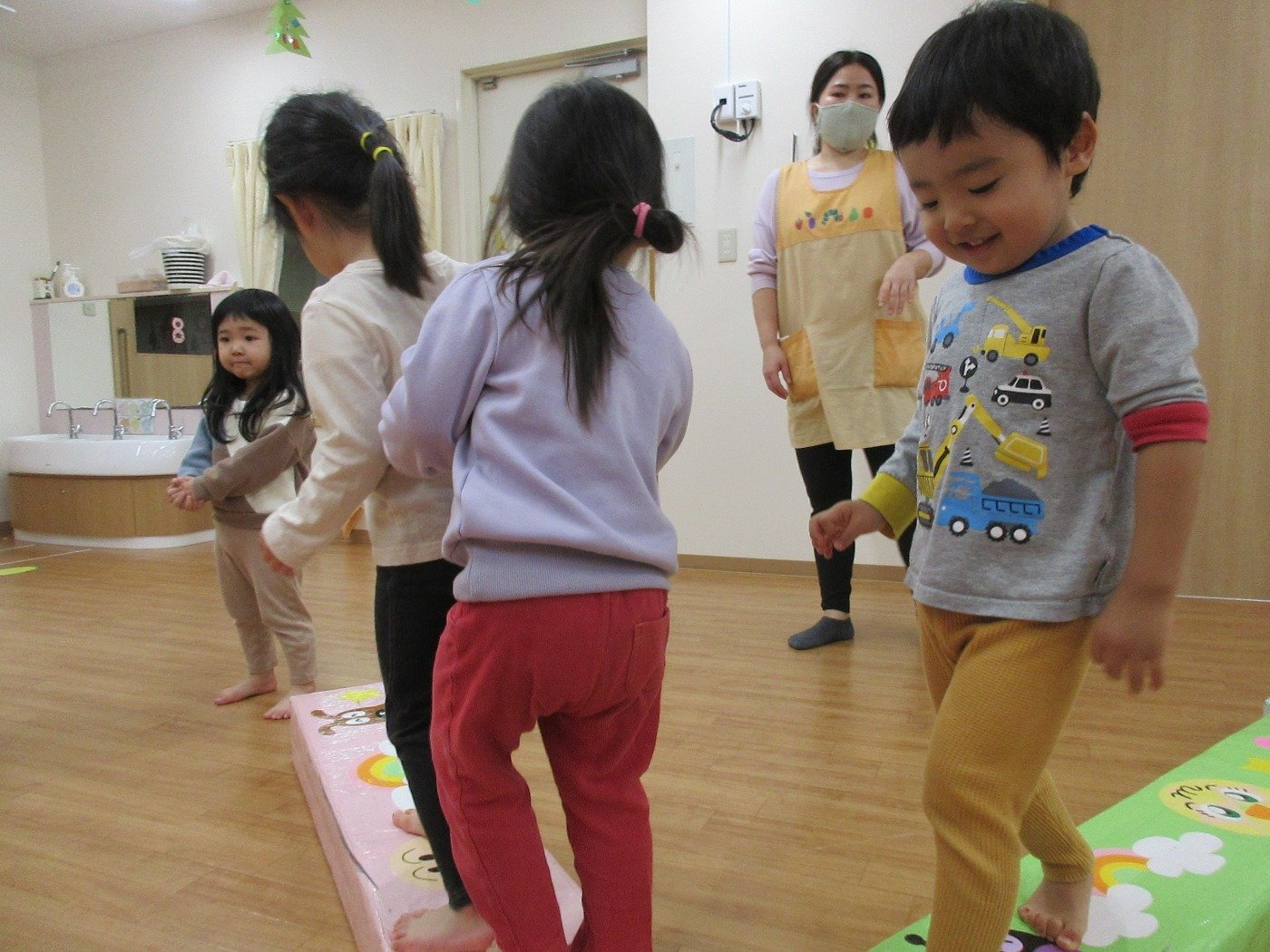 うさぎぐみのお友だちとサーキット遊びをして