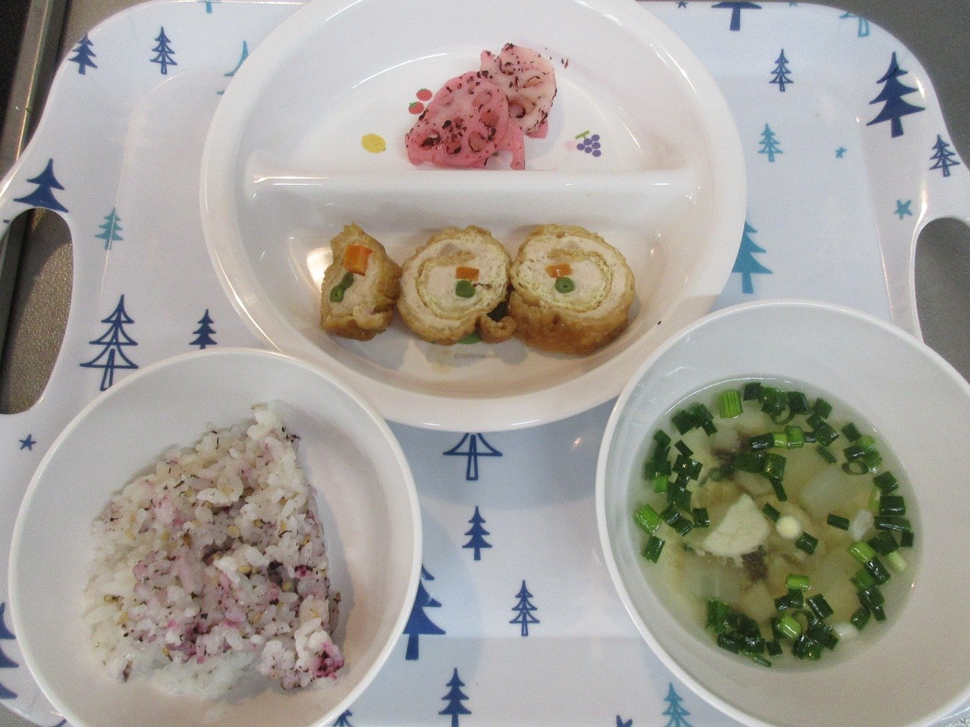 黒豆・レンコンの酢の物・鯛のすまし汁・信田巻き・さつま芋きんとん
