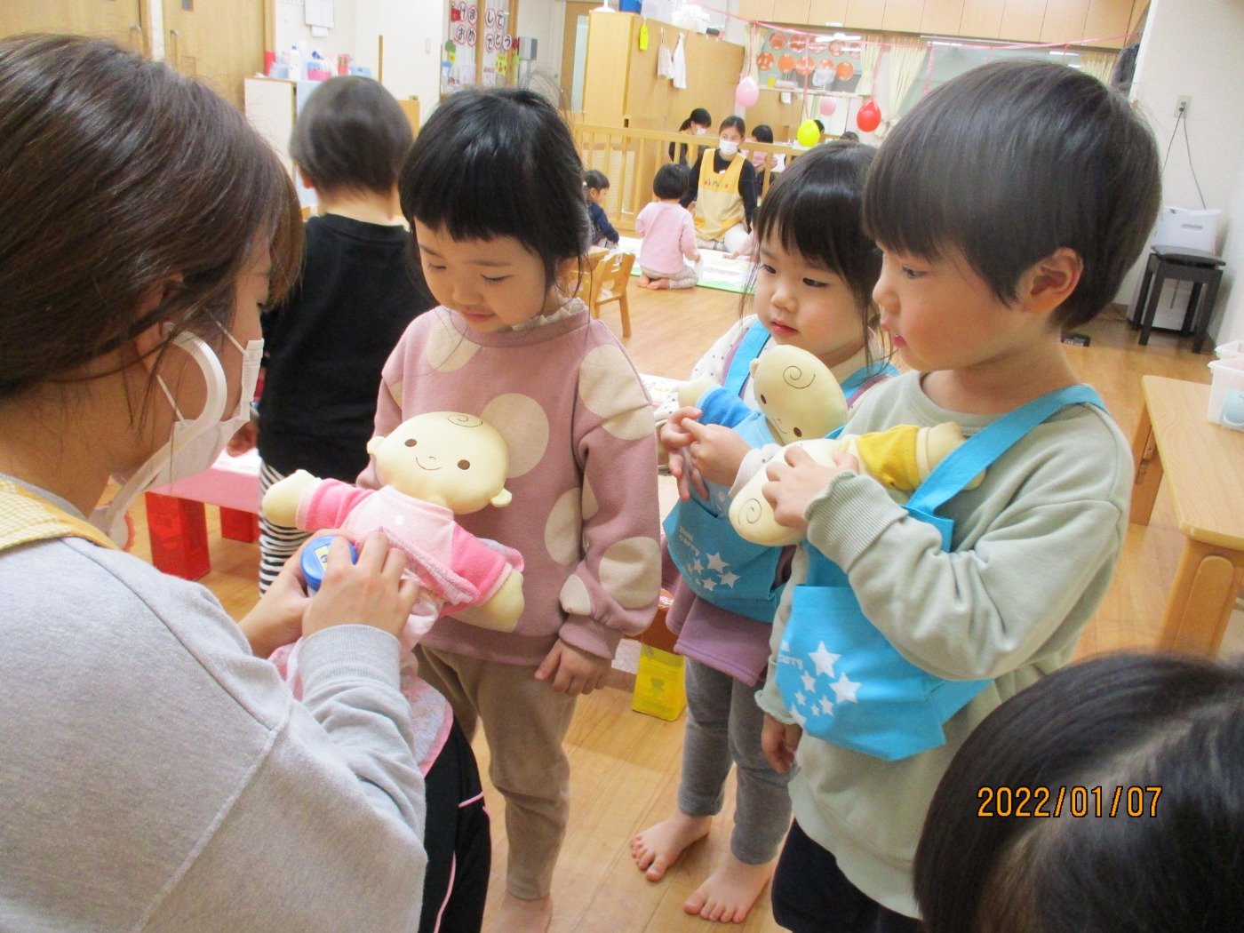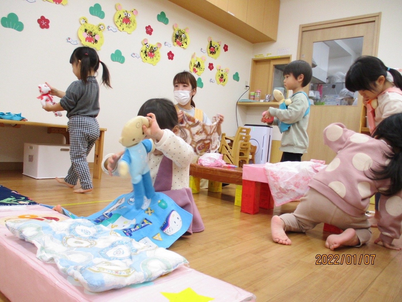 くまぐみさん ホームブログ 2022.01.07 くまぐみさん 今日も元気いっぱいで登園してくれています。 もうすぐ、卒園のくまぐみさん・・・ お友だちの事もきになり お休みのお友だちに気付き。。。 早くあいたいなぁー とお話しているのを聞くと、優しい心もしっかり育ち ほっこり嬉しい気持ちになりました。 お部屋では、ごっこ遊びを先生と一緒に遊びました。 子ども達もよく見ていて、真似っこもとっても 上手です♪